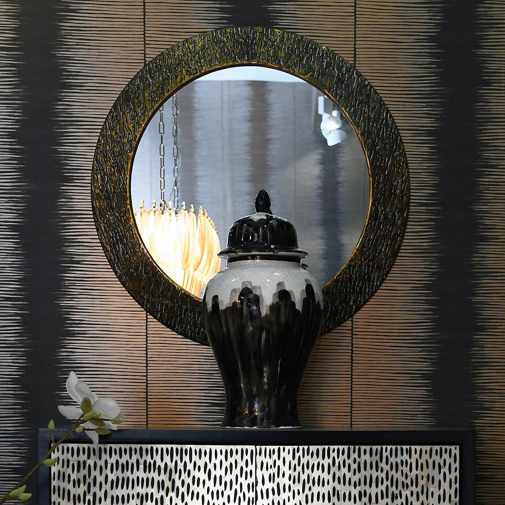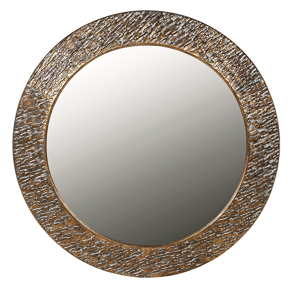 The Ajuic Round Mirror is a mix of classic workmanship and modern elegance. This beautiful wall mirror has an antique gold finish with a textured metal frame. It adds warmth, depth, and creative character to your living room. Its circular design, which is symmetrical, makes it a great accent to any collection of mirrors or furniture.