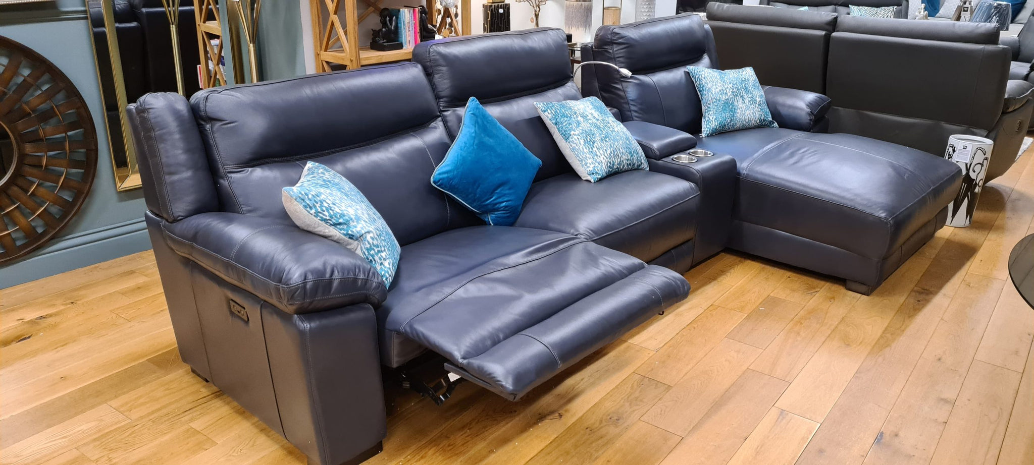 Aoife Leather Sofa Chaise with USB charger and reading light.