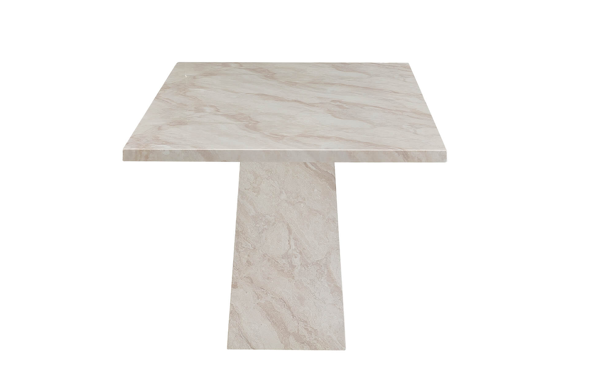 Enhance your dining room with this gorgeous Apollo Dining Table 160 cm Taupe designed to bring elegance and sophistication into your space. With its solid marble and marble foil construction, this solid dining table is a fantastic complement to your modern kitchen that guarantees stability and longevity. Sleek UV resistant lacquer finish making this kitchen table water repellent and non-porous for easy maintenance. Its rich marble taupe gloss finish radiates richness and create an inviting calming atmosphere in your dining room. Whether you're hosting a candlelit dinner or enjoying casual weekday meals, this rectangle dining table perfect for 6 people transforms the atmosphere with its timeless charm. Shop dining tables online at Foys to upgrade your dining room furniture and elevate you everyday dining experience.