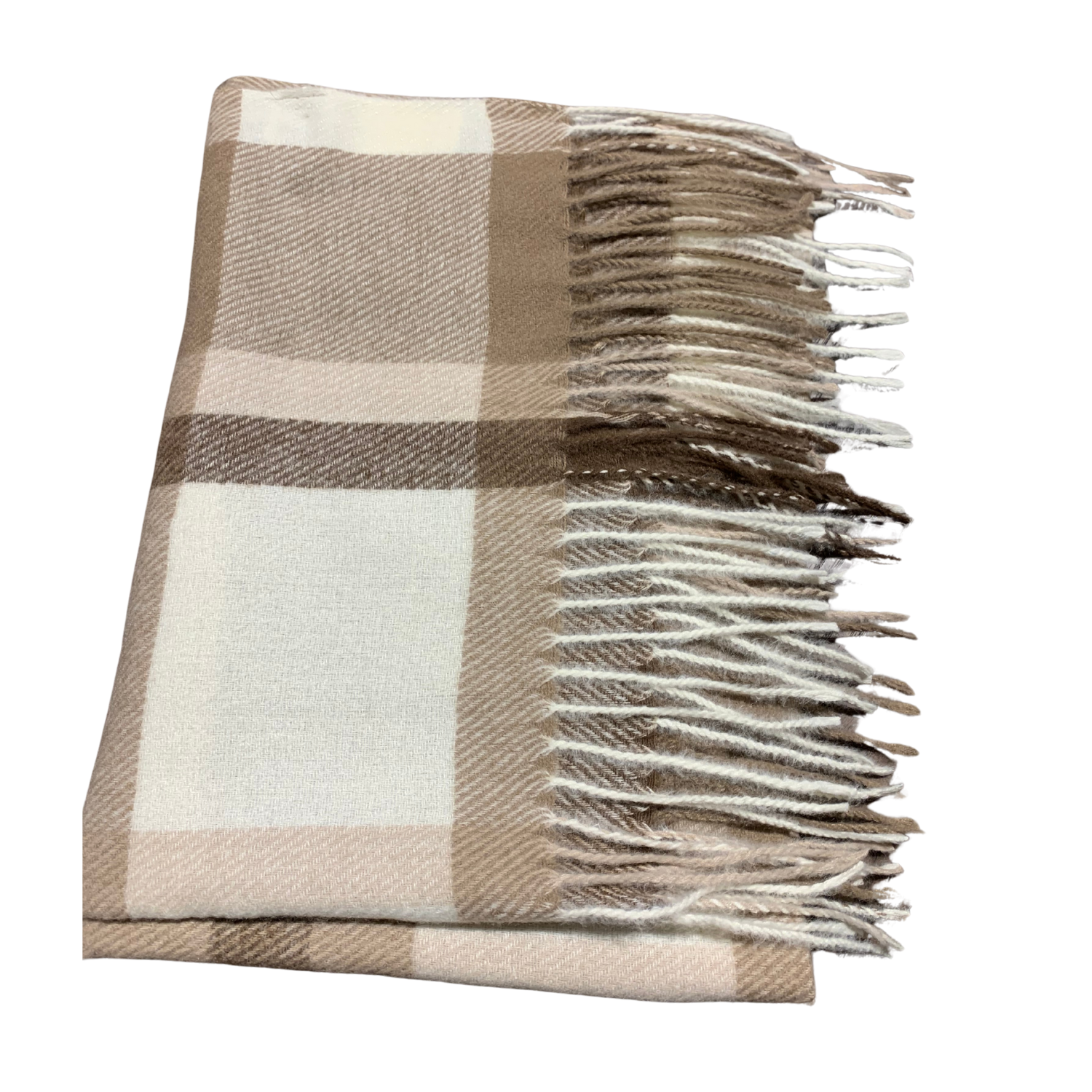 This scarf has a classic Scottish-style checkered design that makes any outfit look better. The beige colors go well with both casual and sophisticated outfits.