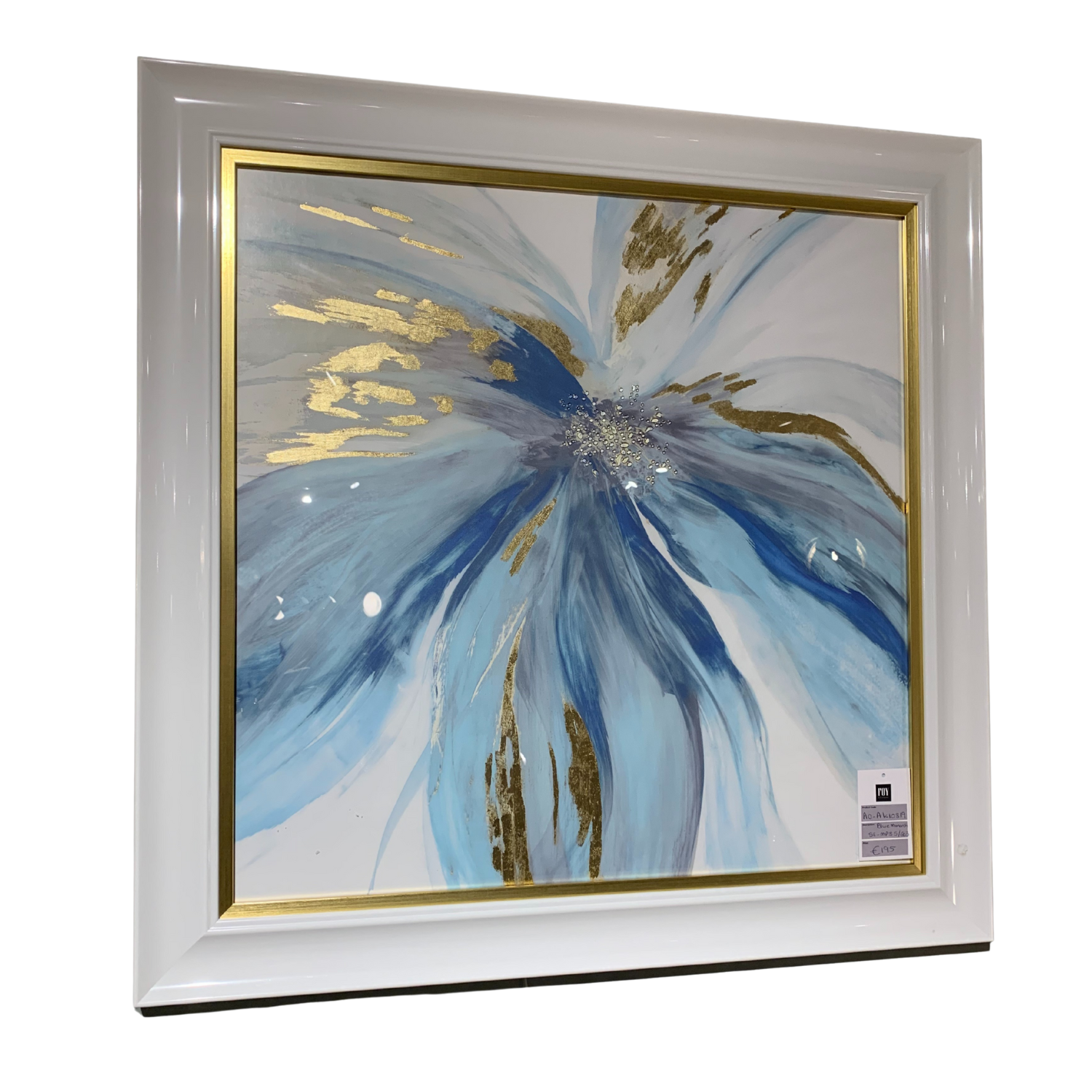 - Premium abstract floral wall art with vibrant blue and gold detail