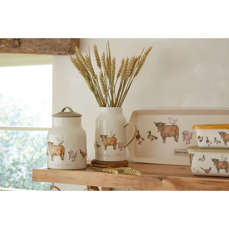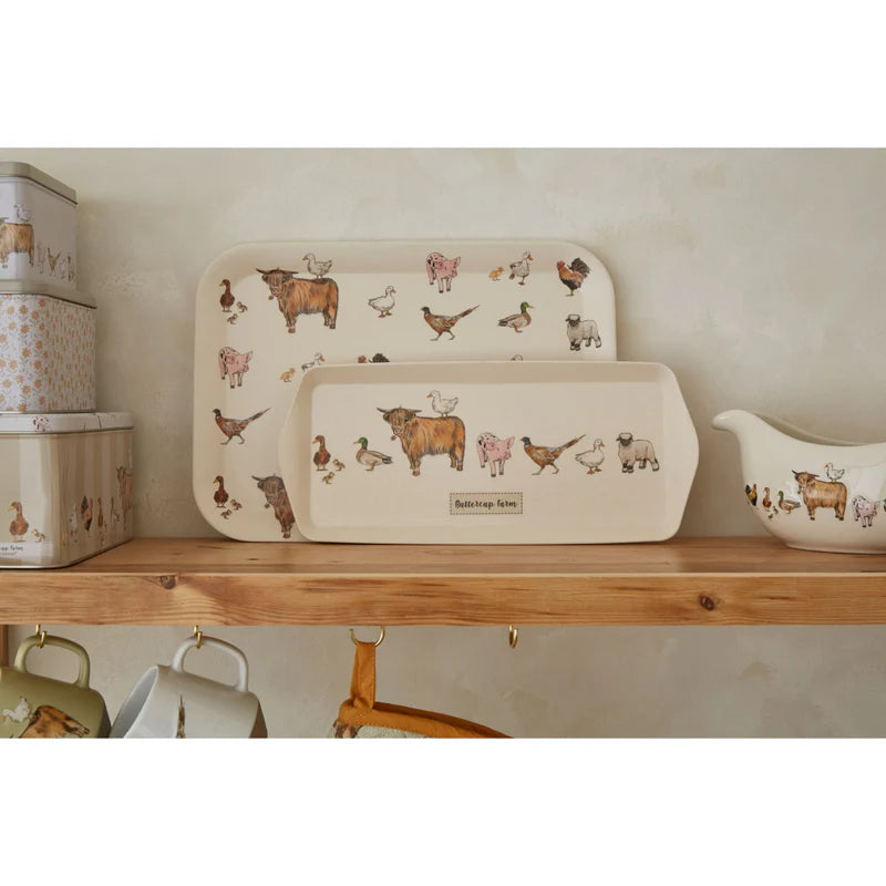 Welcome to the Buttercup Farm collection, where every piece brings the charm of the countryside to your kitchen. The Buttercup Farm Tray is crafted from a sturdy bamboo mix, combining strength with lightweight convenience. Measuring 33 x 24.5 x 1.8cm, this tray is ideal for serving and organizing in style. Its farm animal design adds a whimsical touch, making it a delightful addition to any home. Whether used for serving snacks or organizing kitchen essentials, this tray reflects both functionality and rustic charm. Shop online now at Foy and Company.