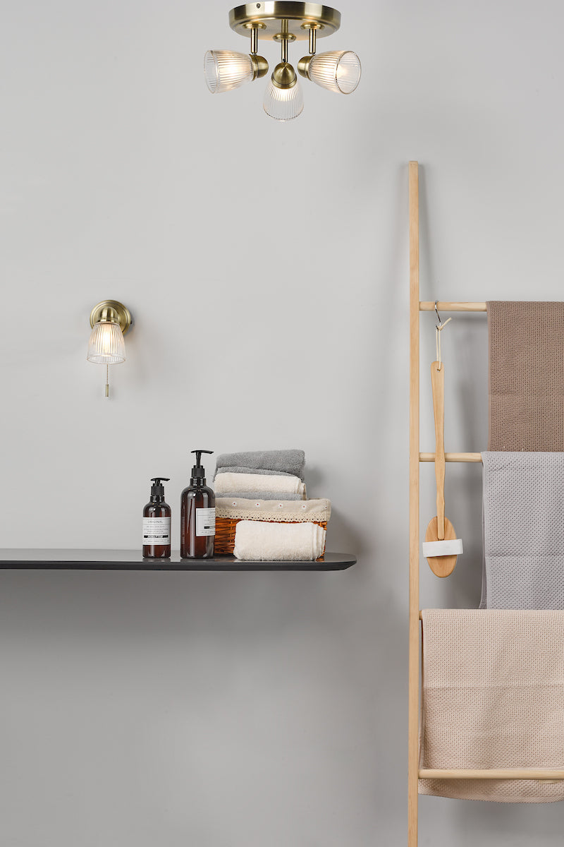Cedric Bathroom 3 Light Spotlight Antique Brass Glass IP44