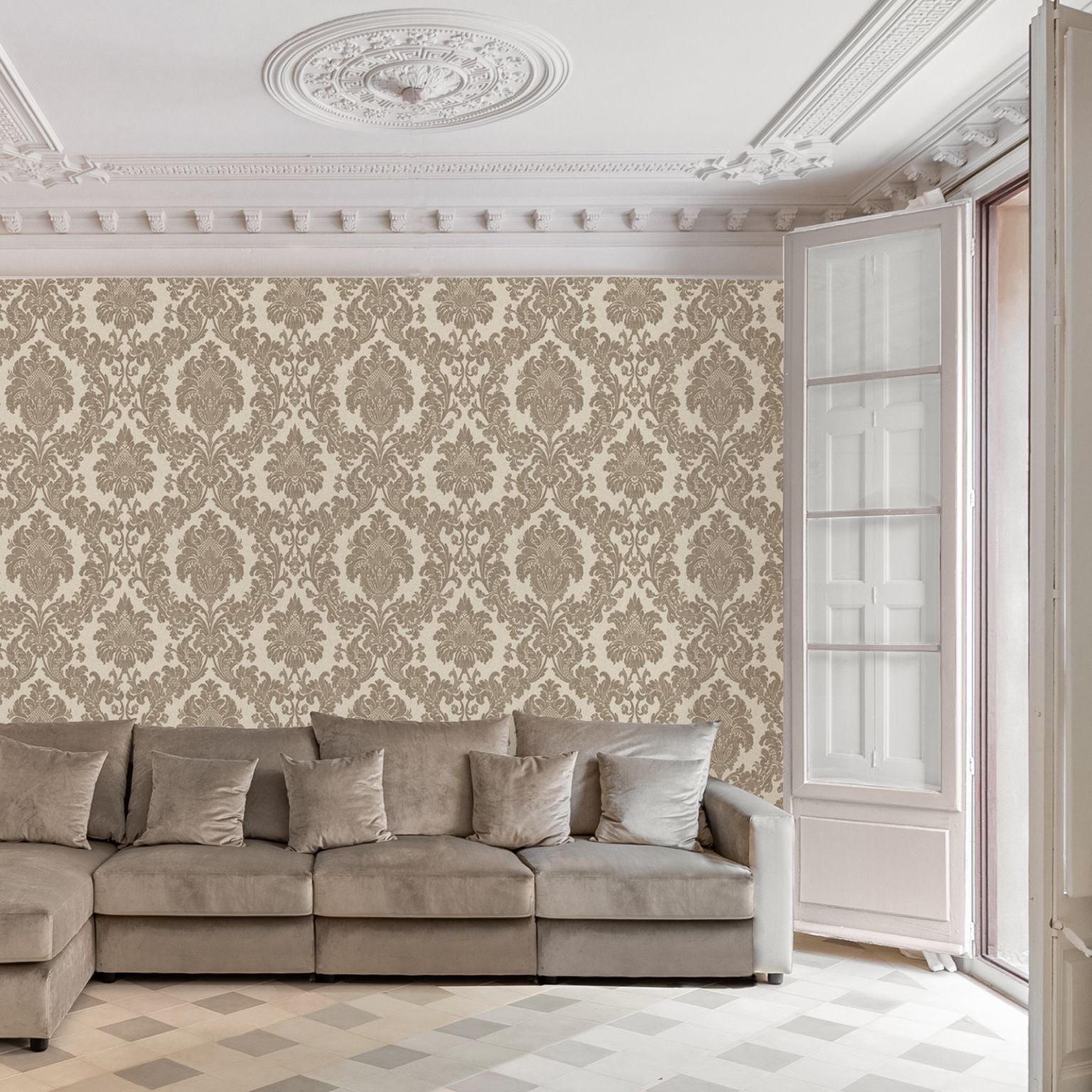 Refresh your walls with this beautiful Ciara Damask Wallpaper from Belgravia that will add a rich velvety texture into your interiors. This Italian vinyl wallcovering with an embroidery effect and a light dusting of glitter - creating a contemporary distressed look for this classic damask design. They are printed on an excellent quality heavy weight vinyl and boasts a shimmering finish which catches the light adding a luxurious feel to your living space. The neutral, classic colour palette makes it adaptable to any home décor, while its plush finish invites touch and admiration. Elevate your walls with sophistication and elegance and shop damask pattern wallpapers online at Foys today.