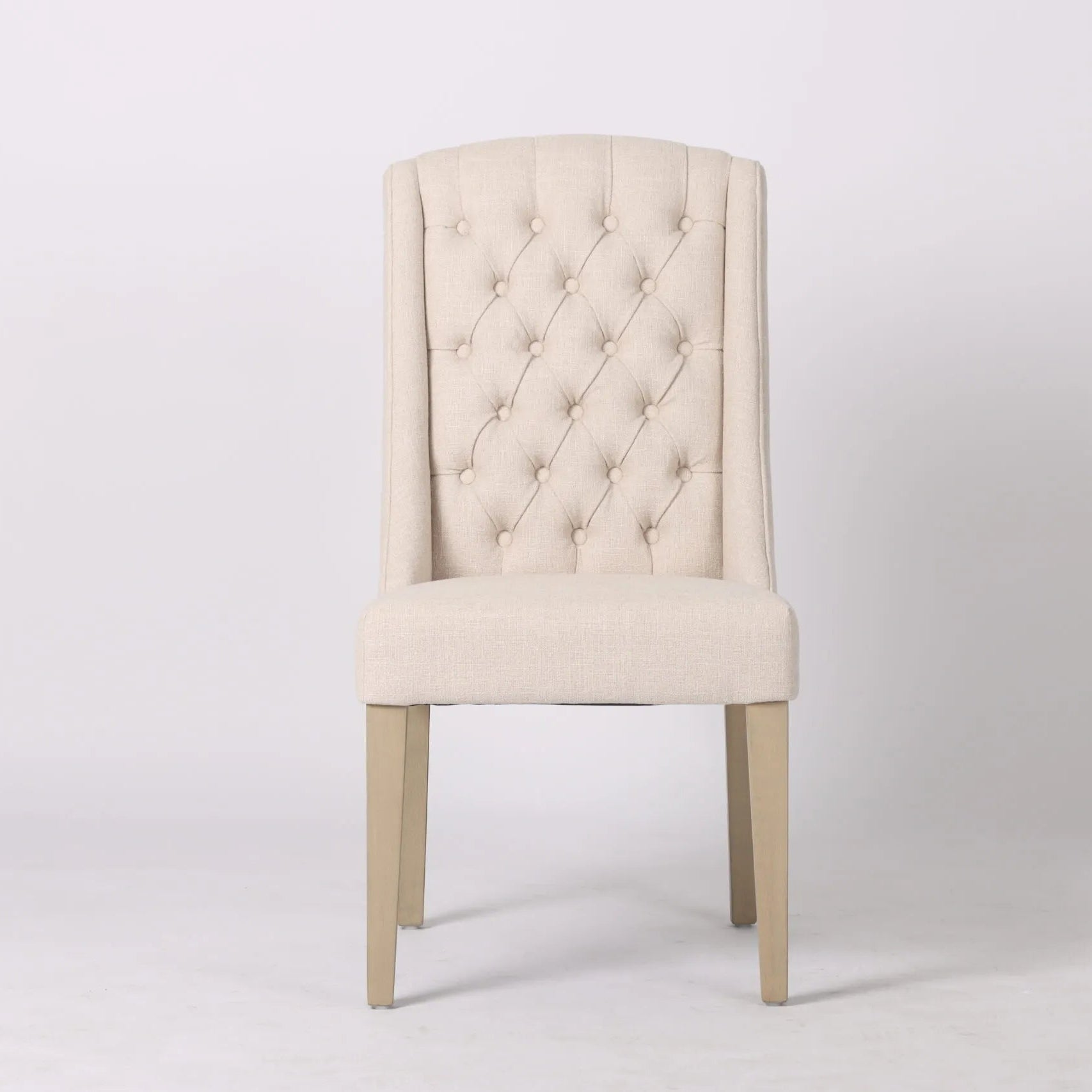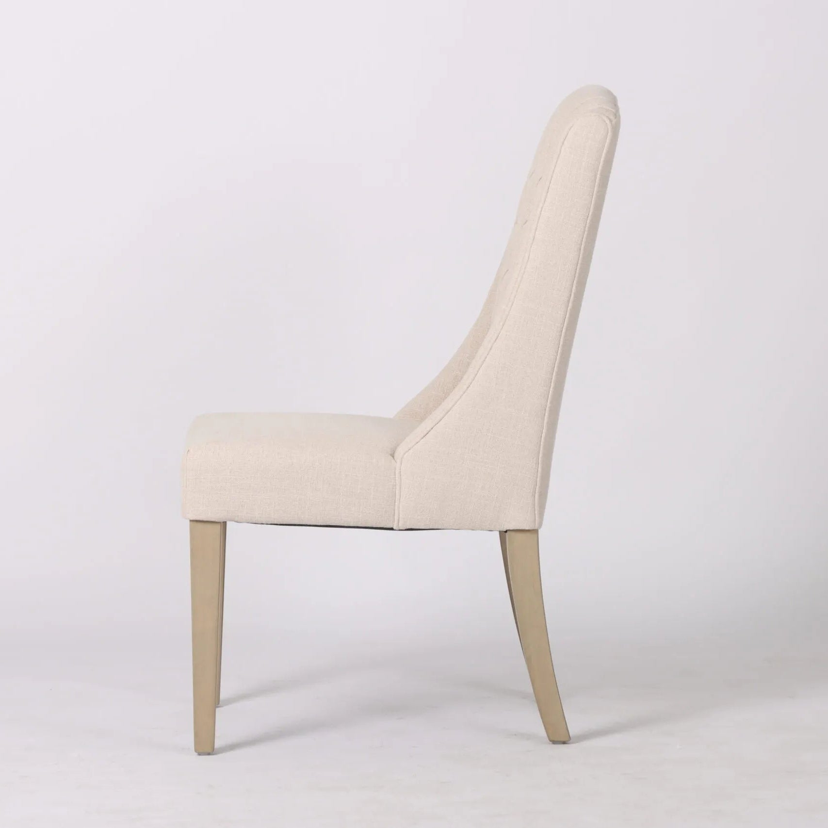 - Material: High-quality beige fabric upholstery, solid wood legs