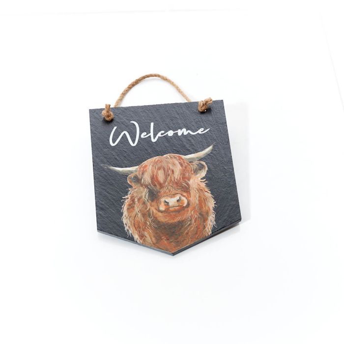 A sign of welcome is an inviting element that makes guests feel at home and appreciated from the moment they arrive. It sets the tone for the hospitality they will receive and reflects the personality and warmth of the household. Its charming Highland cow design exudes a friendly and inviting vibe, while the rustic style complements various home décors. By placing this welcome plaque at your door, you are not only enhancing the aesthetic appeal of your home but also conveying a message of warmth and friendliness. This door sign is more than just a decoration; it’s a statement of your home's hospitality. The slate material ensures durability, making it a lasting addition to your entryway. For those who appreciate unique and charming décor, this welcome sign is a must-have.