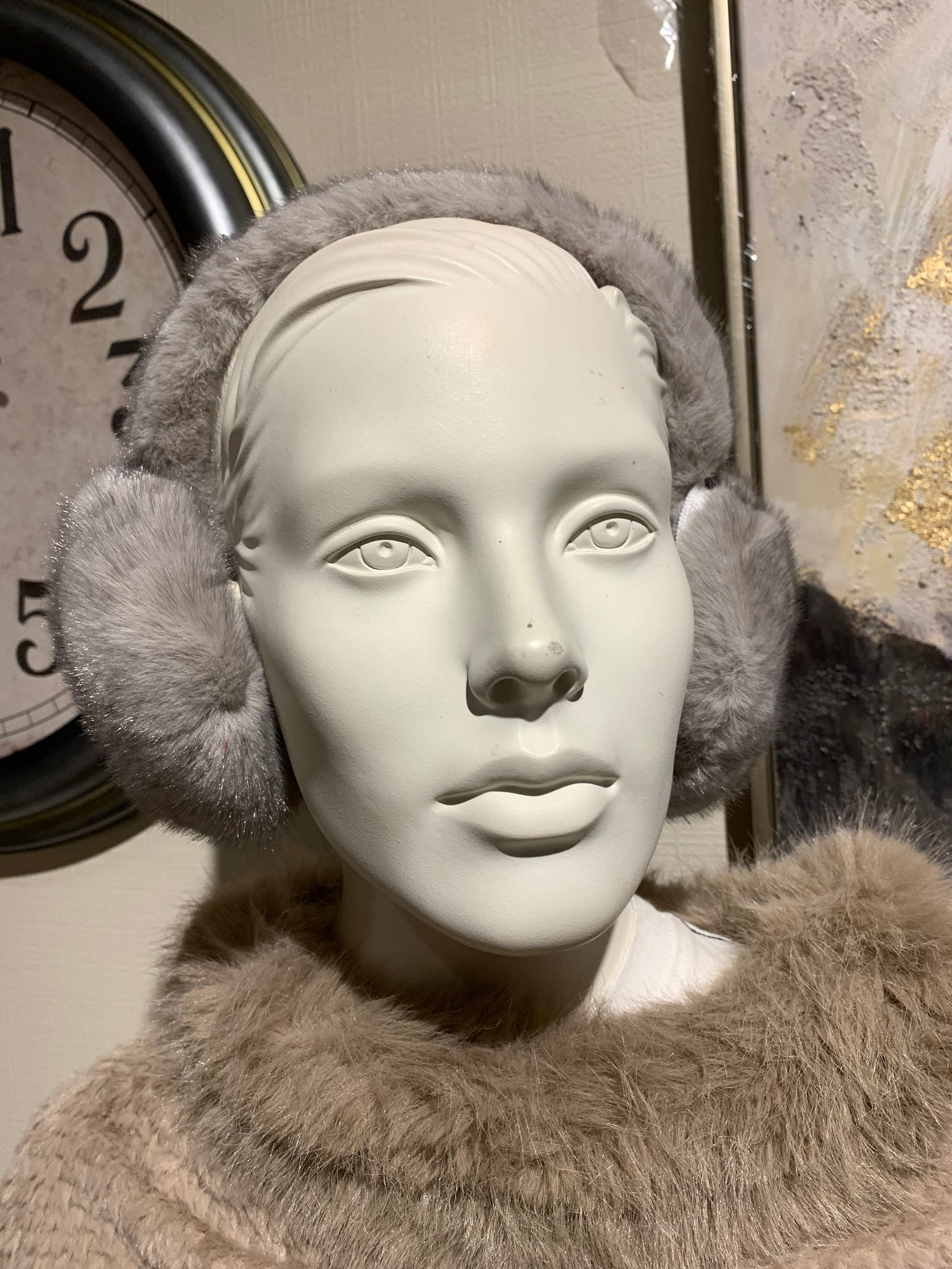 Grey Plush Earmuffs for Women – Soft & Warm Winter Ear Warmers
