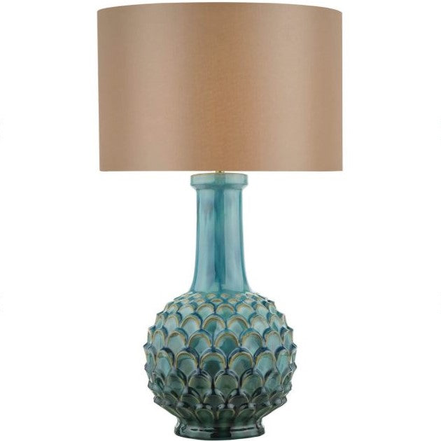 This elegant Edlyn Table Lamp Blue Reactive Glaze was crafted to bring a touch of uniqueness to your home décor. This an artichoke-inspired table lamp with antique brass metalwork and a hand-made white reactive glaze finish that subtly changes colour in natural light. Its beautiful blue colour gives a fresh touch to any interiors and will perfect fit in your bedroom or living room. Ivory cotton drum shade will create a welcoming atmosphere in your home. Shop this table lamp online at Foy and Company and transform your home décor today.