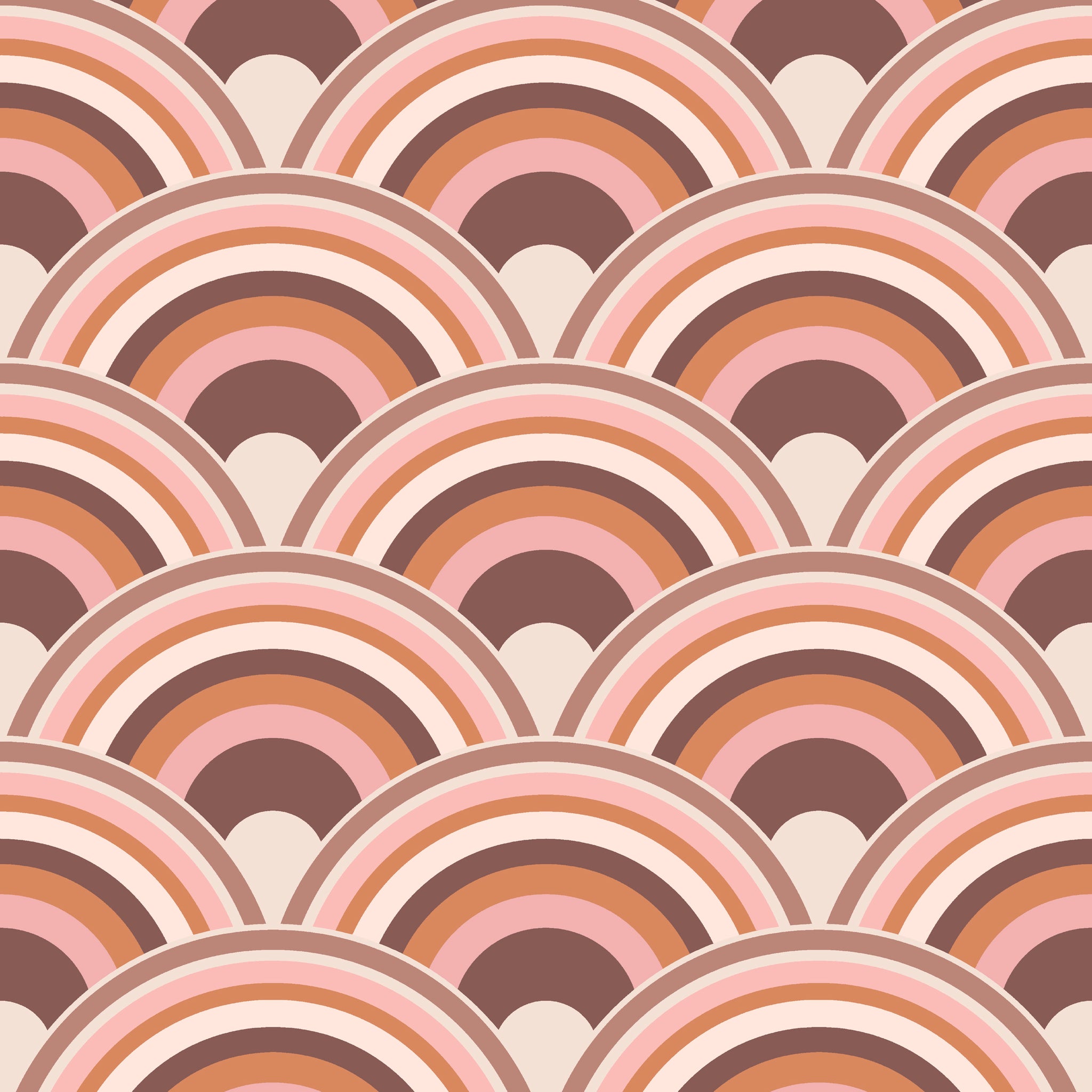 - Retro-inspired geometric wallpaper with earthy terracotta and pink tones