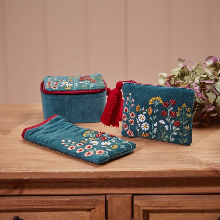 Discover the Elegance of a Floral Home Glasses Case in Blue Velvet