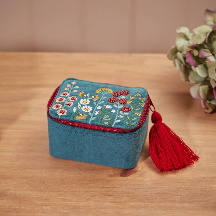 Discover the Perfect Floral Jewellery Case in Blue Velvet for a Personalized Gift