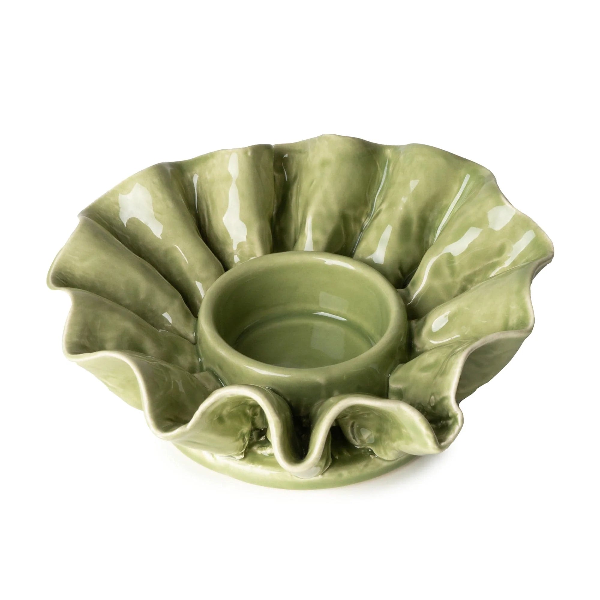 Elevate your home decor with our stunning Flower Shaped Tealight Holder in a beautiful green ceramic finish. With it size 14.x14.x5cm, this intricately designed piece adds a touch of elegance to any space while creating a warm ambiance with soft candlelight. Shop candle holders online at Foys to create warmth, style, and serene charm.
