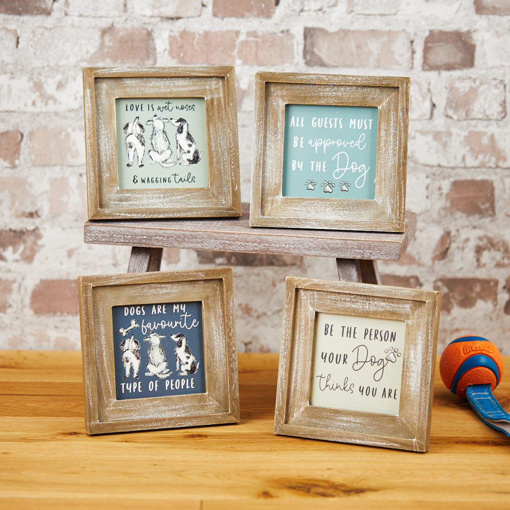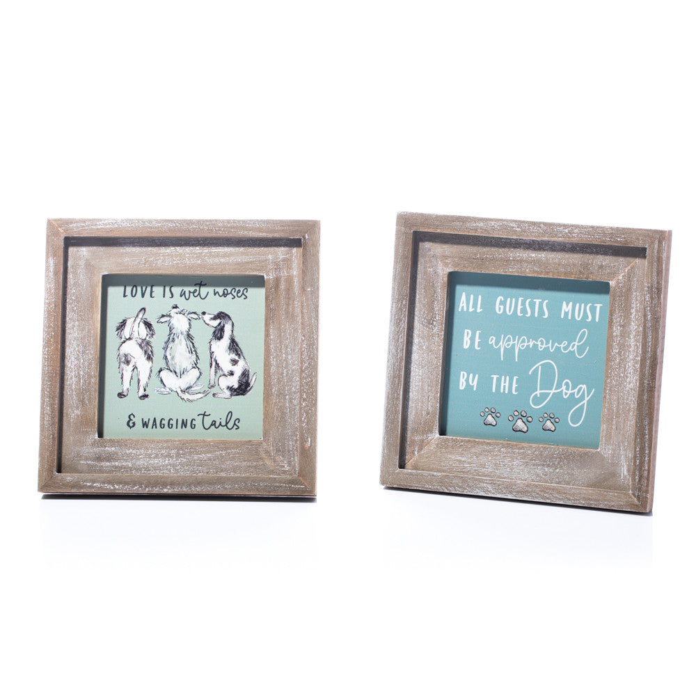 Elevate your decor with these charming framed dog plaques. Perfect for dog lovers, it adds a touch of canine charm to your space.