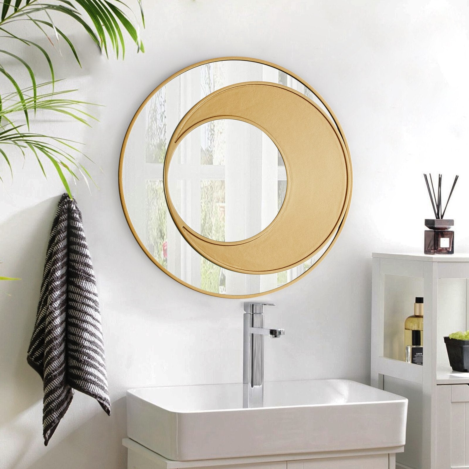 Versatile and stylish, this round mirror adapts to various interior styles, from modern to traditional. Its graceful lunar shape enhances the beauty of your living space while serving a practical purpose. Let this stunning piece be the highlight of your home, reflecting your unique taste and style.
