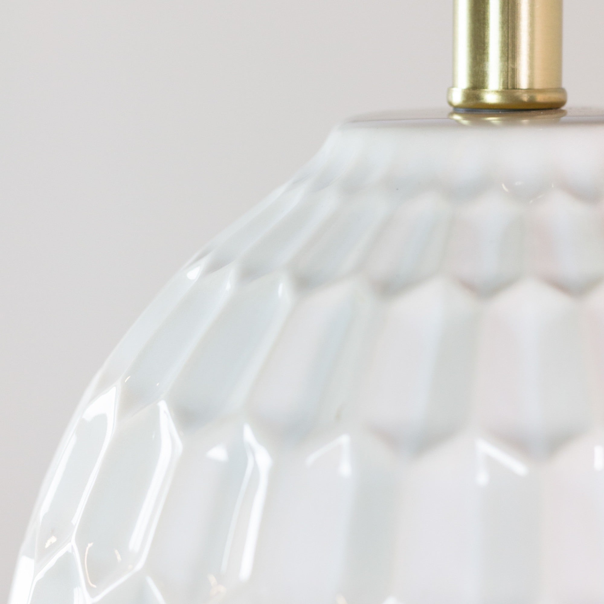 The Gemma Ceramic Lamp is a beautiful table lamp that combines modern style with warm, welcoming light. The base is made of ceramic and has a geometric pattern on it that makes it look stylish and goes with any home decor. This lamp is great for bedrooms, living rooms, or home offices because it adds to the atmosphere while also providing useful light.