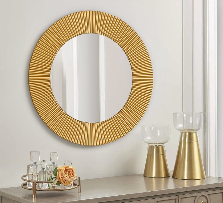 Elevate your home’s aesthetic with this round mirror that serves as both a functional accessory and a bold statement piece. Each glance into this luxurious design invites you to appreciate your surroundings in a new light. With its versatility, you can effortlessly adapt it to any area in your home, making it a truly timeless addition.