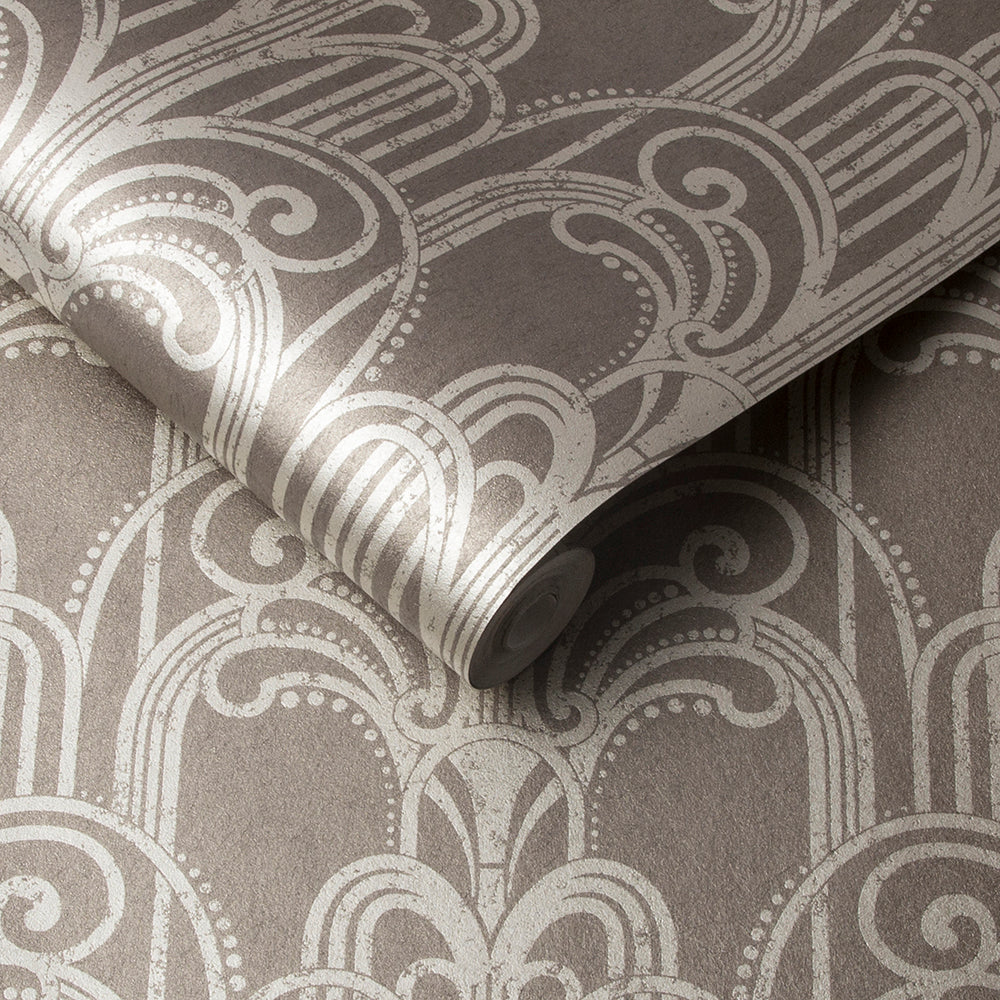 Add a touch of natural elegance to your walls with this Graham & Brown Art Deco Natural Wallpaper crafted from high-quality materials and ensures longevity for years to go. This damask pattern wallpaper takes the outrageous design of a typical 1920s style and tones it with warm, neutral brown textured substrate. Glimmers of soft gold metallic highlight the detailed fountain design and create a liveable glamourous wallpaper. Perfect for living rooms, bedrooms, or feature walls, this wallpaper makes spaces feel inviting and opulent. Shop wallpapers online at Foys to add warmth and sophistication to your home decor.
