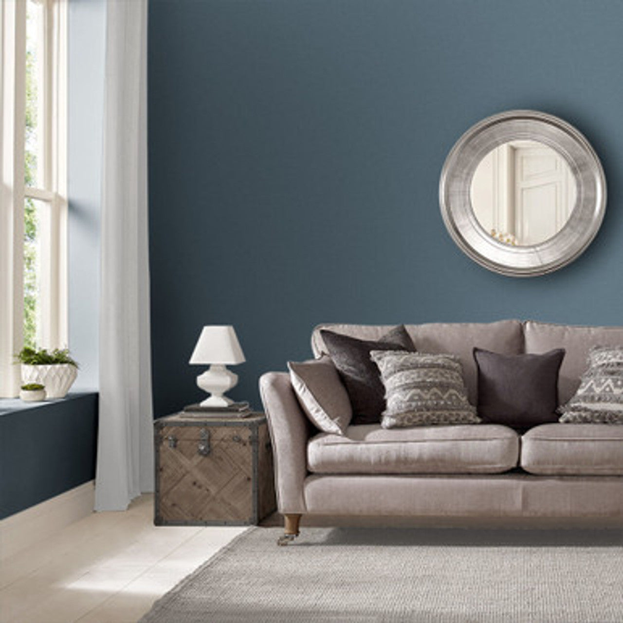 Transform your interiors with this Graham & Brown Benjamin Blue Paint with a strong and beautiful colour. The stunning shade of paint comprises 90% blue pigments while containing red undertones for warmth and comfort. Benjamin Blue is a spectacular color that, while deeply intriguing, also feels calm and restful. It's a blue grey paint that will feel at home in both new and period-style homes as it combines traditional tones with contemporary fashion. It's available in a range of finishes, including matt and gloss. Shop paint online at Foys - an ideal for both bold statement walls and subtle home decor accents.
