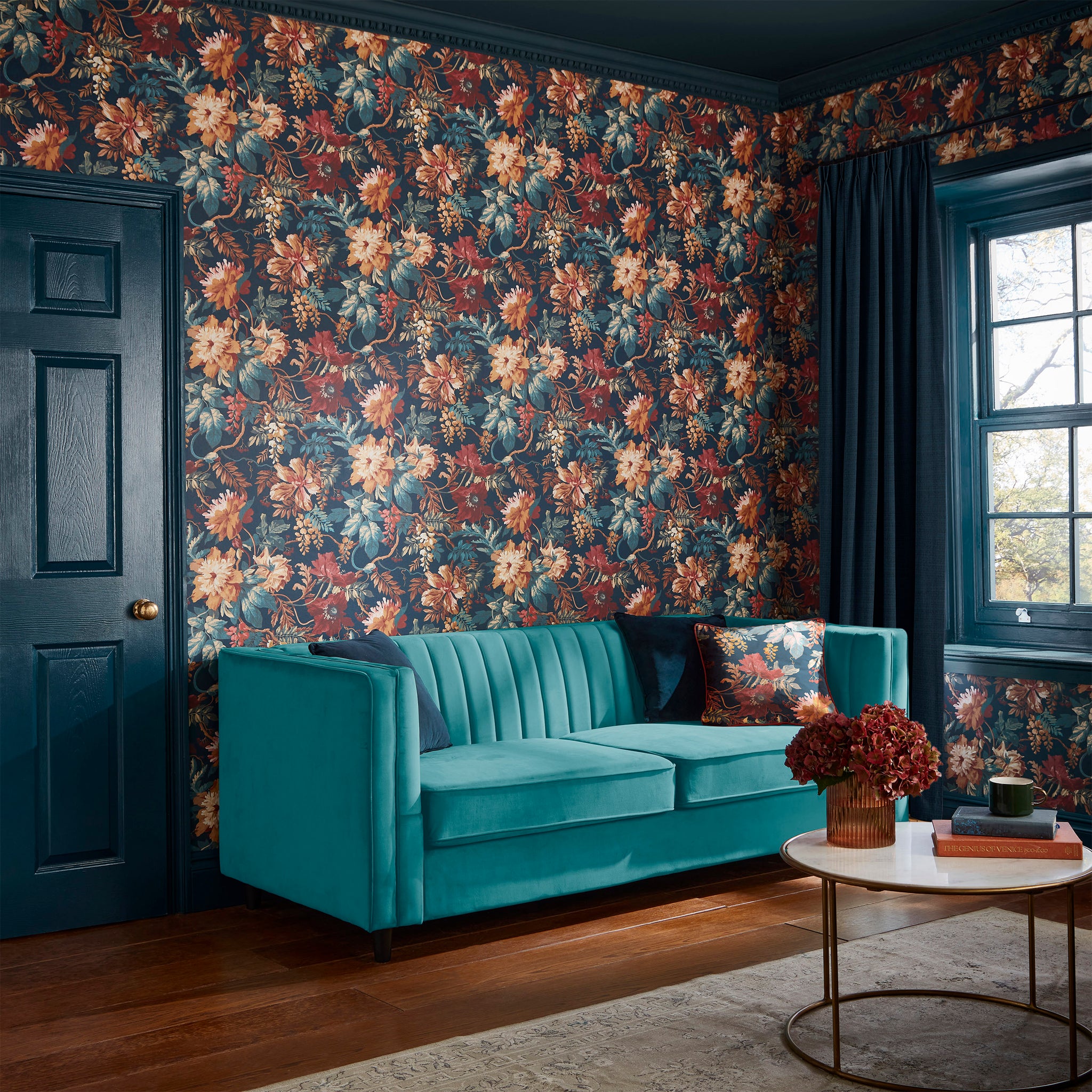 Bring the beauty of these colorful flowers to your living space with this Graham & Brown Florenzia Dusk Wallpaper crafted for a bold look and timeless elegance. Florenzia symbolizes the restoration of historical beauty and celebrating bringing new life and color into an artwork that has been carefully selected from our archives , once hidden away we reclaim this design now refined and ready for the walls of 21st century homes, fitting perfectly in kind with our Flawsome trend for 2023. Imagine how your dining room, bedroom, or hallway transforms when enveloped by vibrant botanical that bring warmth and life to your surroundings. Shop wallpapers online at Foys to add warmth and sophistication to your home decor.