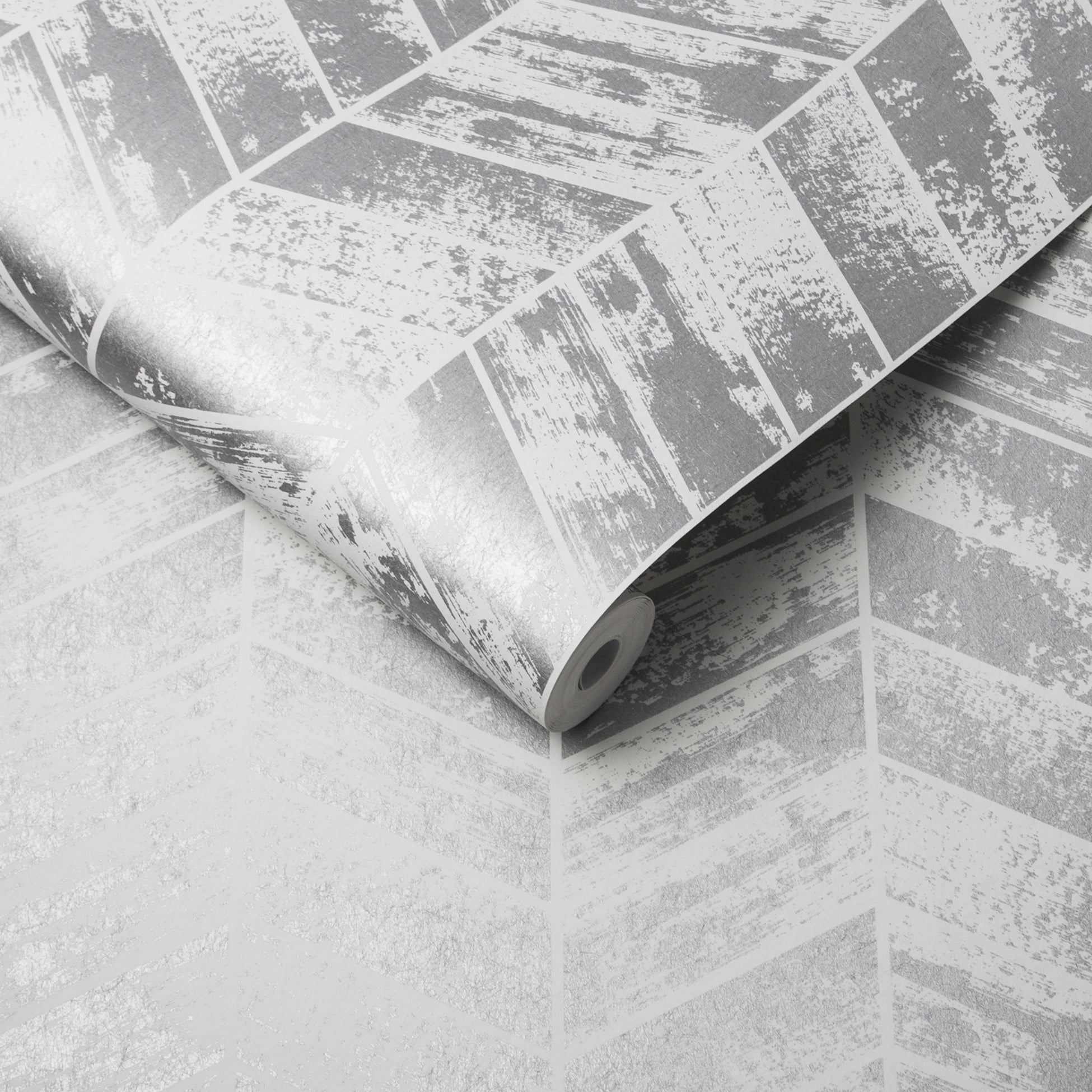 Refresh your interiors with this Graham & Brown Insignia Silver Wallpaper crafted from the high-quality materials to become a great investment for years to go. Crafted with geometric design in modern silver metallic and combining it with traditional art forms creates the stunning design of Insignia Silver. Hand painted brushstrokes are highlighted through textured fibrous paper to create a detailed, handmade feel inspired by natural good grain. To apply them you need just paste the wall and hang them up with easy. Shop wallpapers online at Foys to add warmth and sophistication to your home decor.