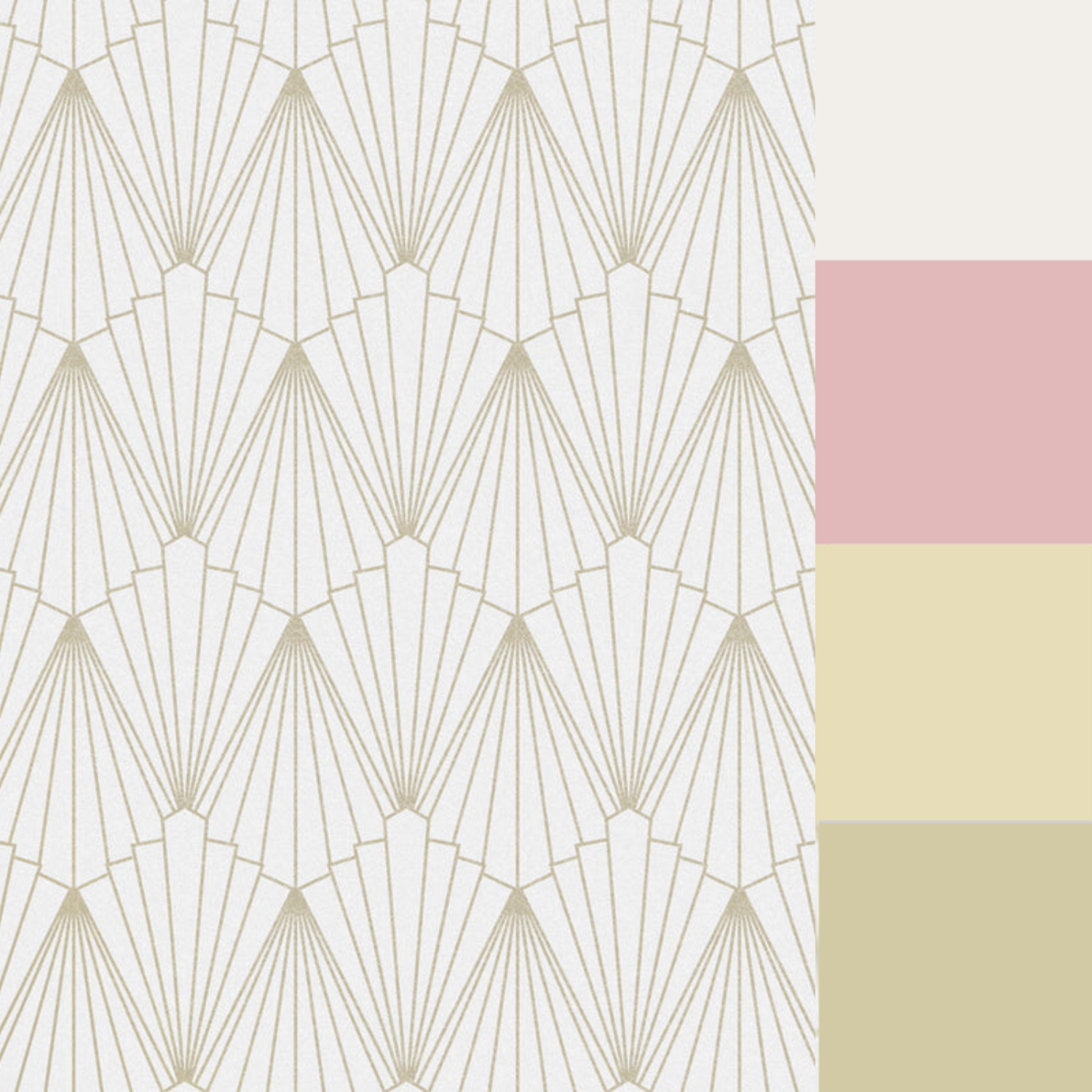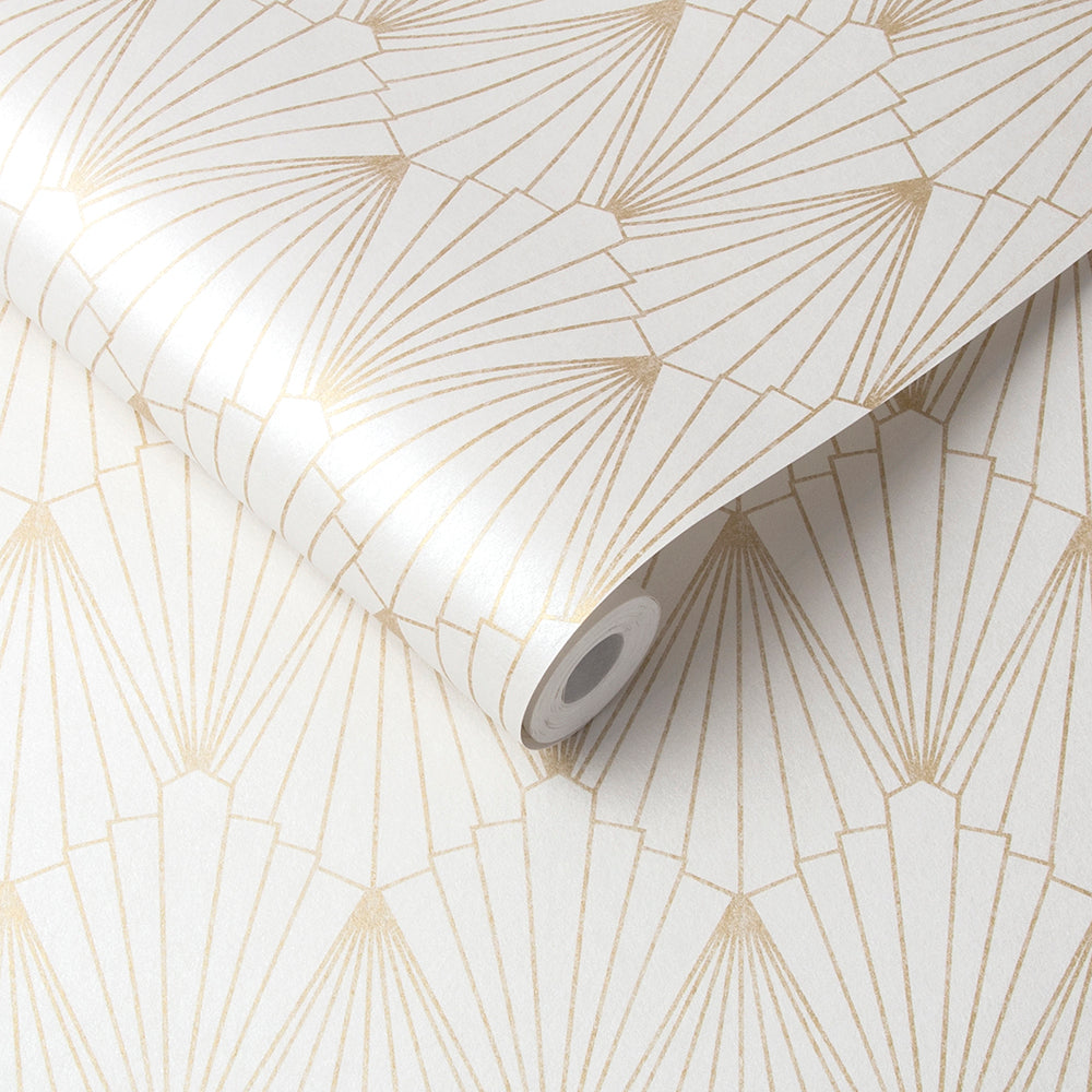 Transform your space with luxurious Graham & Brown Rene Shimmer Wallpaper, adding timeless elegance, modern charm, and a touch of Gatsby glamour. Stunning pearlescent textured paper is adorned with gold metallic geometric fan design to create Rene Shimmer wallpaper. Inspired by the structures formed in the 1920's period, the Graham and Brown designers created this Gatsby style design with an opulent, sophisticated palette. High-quality material ensures a longevity and easy application. Shop wallpapers online at Foys to add warmth and sophistication to your home decor.