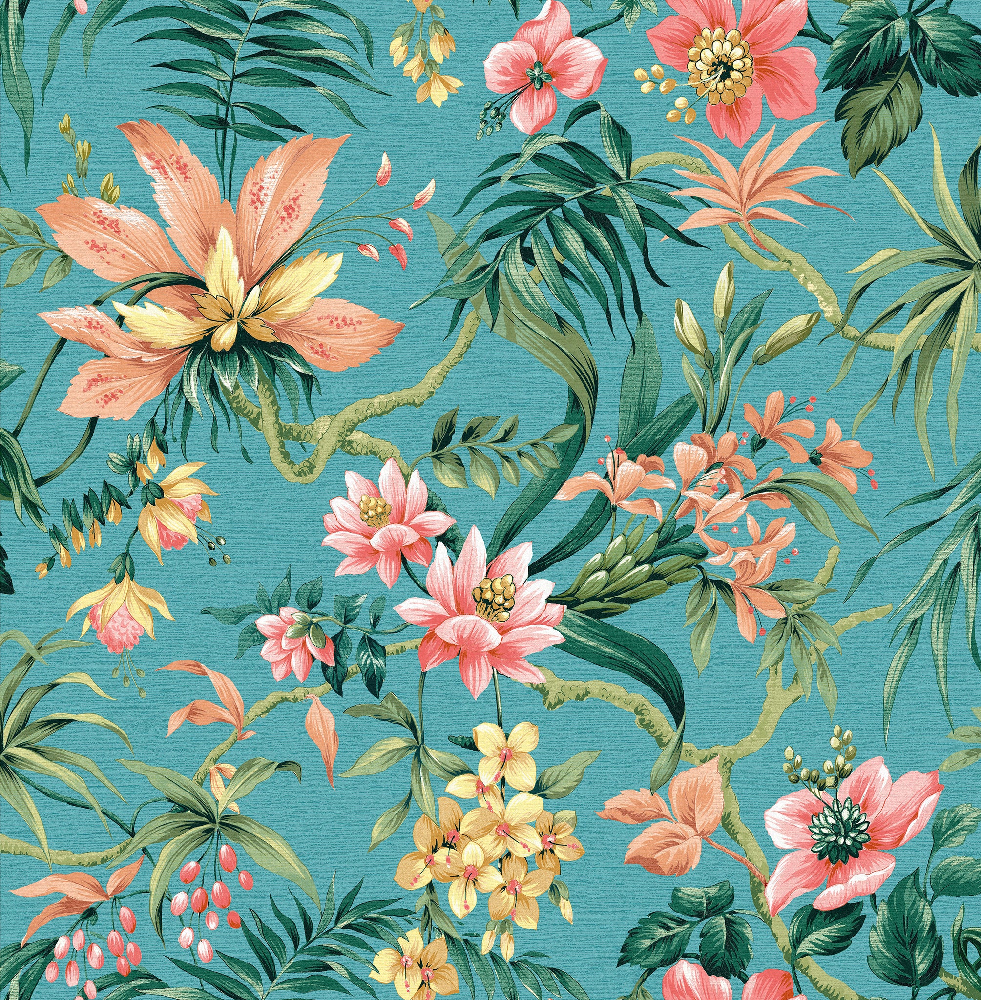 The Tesronto Blue Wallpaper will make your walls come to life with its bright, exotic colors. This design is based on India's Tesronto flower and mixes bright colors, botanical beauty, and classic Graham & Brown craftsmanship.