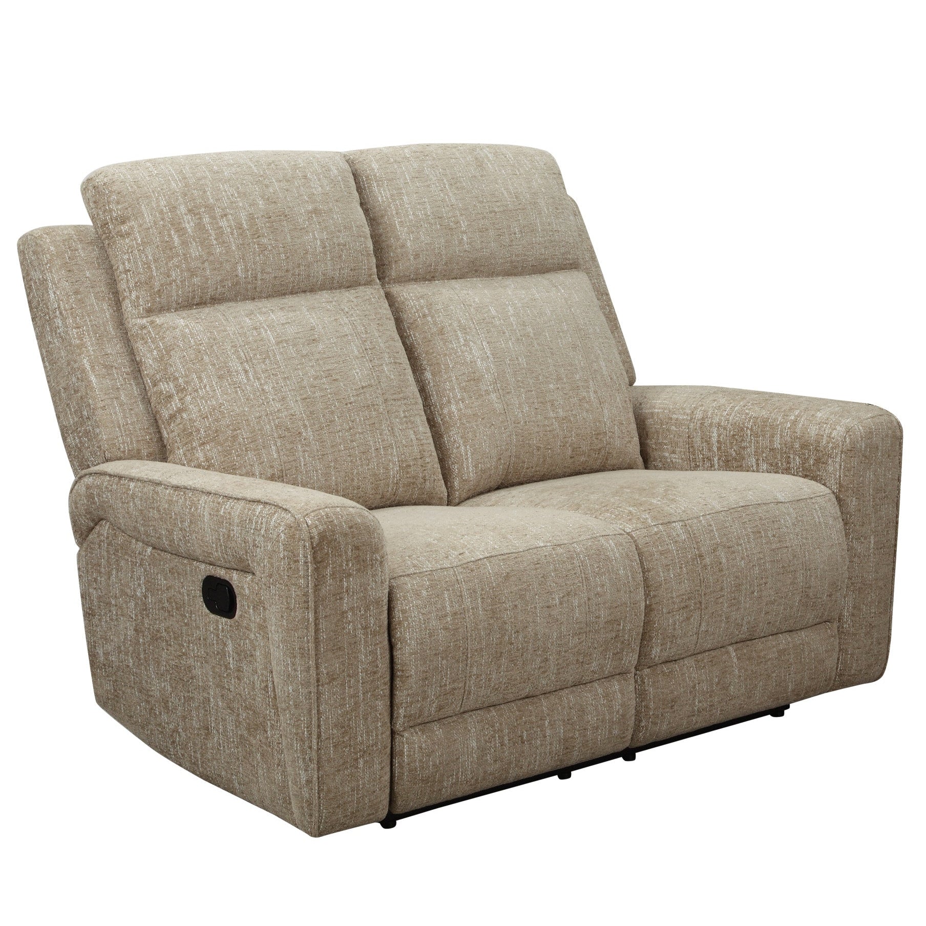 The neutral beige finish goes with a lot of different styles of decor, so this beige fabric sofa will fit in with almost any room. This two-seater recliner sofa is made of high-quality chenille fabric and has supportive cushions. It makes a cozy place to relax, read, or have visitors over.