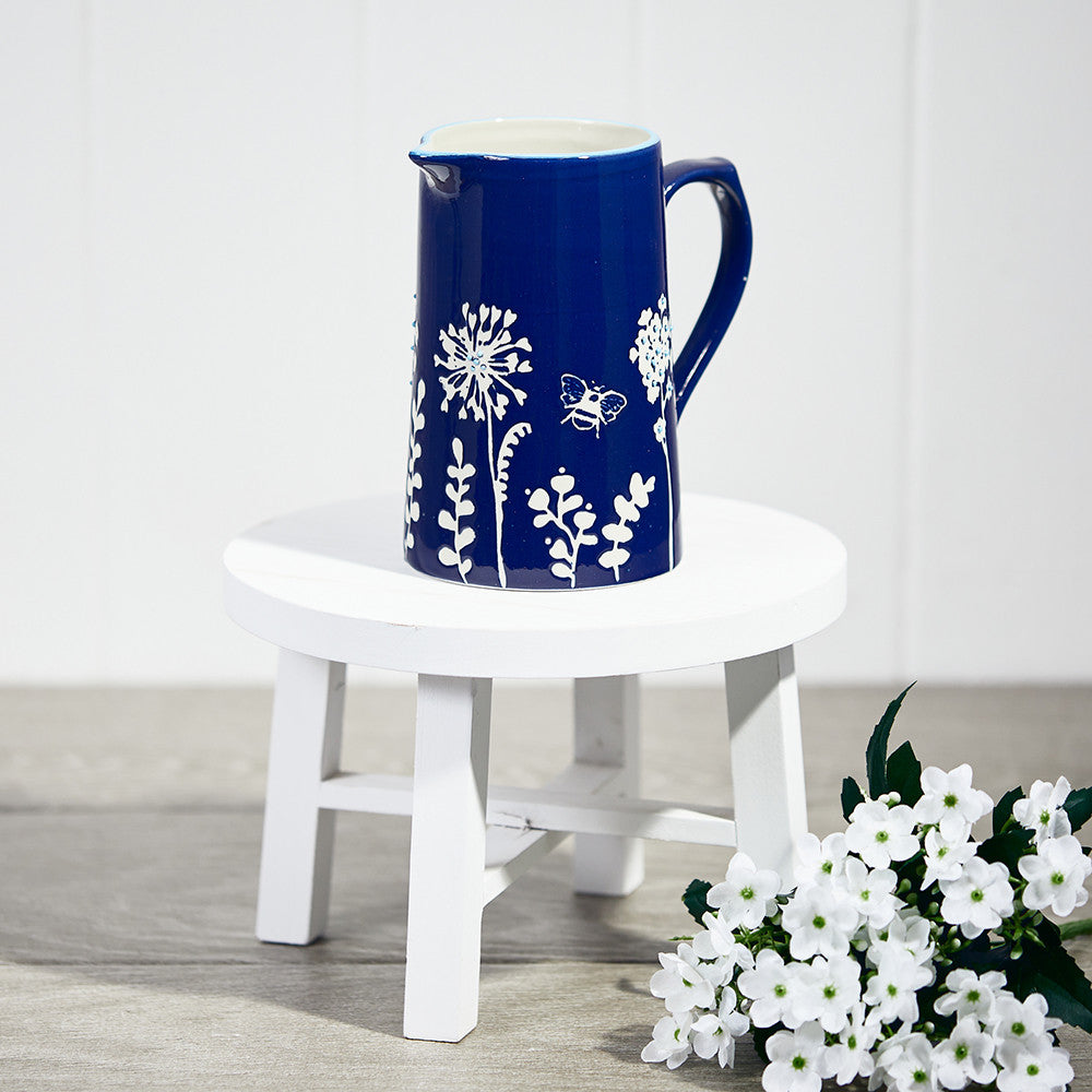 Take your tea service to the next level with this handy sized pint Indigo Handpainted Jug. This pretty jug can also double up as a beautiful and relaxed way to display flowers at your table.Adorned in a vintage navy-blue floral print is the perfect blend of something old, something new and something blue for your table. A contemporary classic that’s brimming with Mediterranean coastal charm.