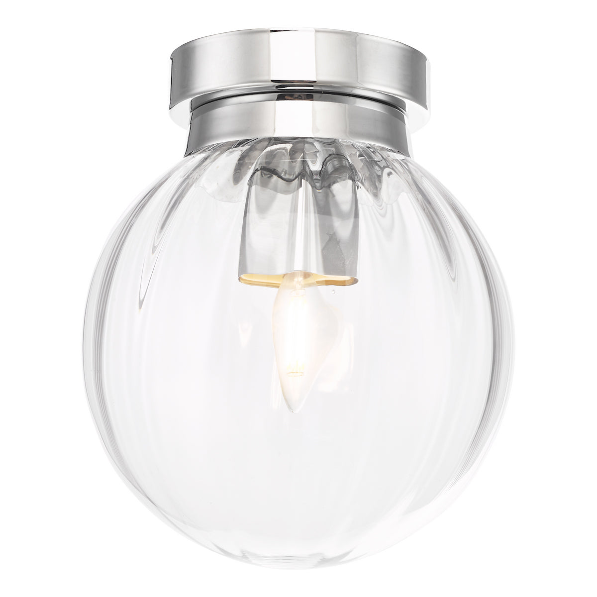 Kavi Bathroom Flush Ceiling Light, Polished Chrome Glass Shade, IP44 Rated Ceiling Mount Light