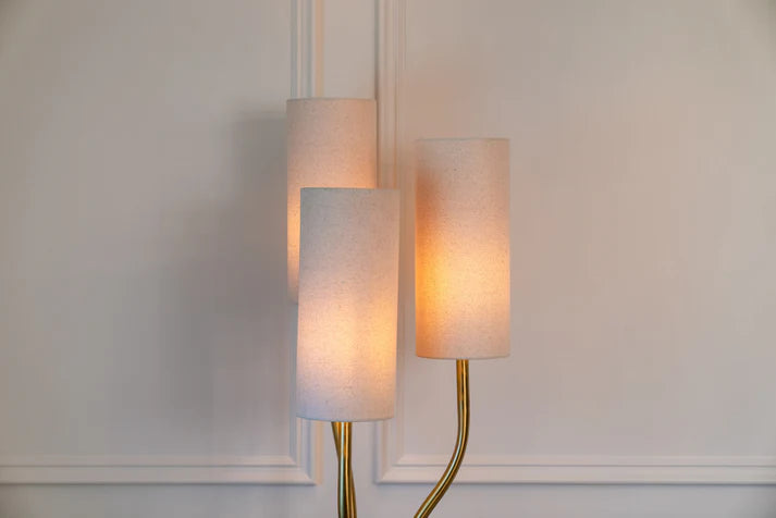 Add a touch of modern luxury to your living space with this Kendall Floor Lamp. This stunning lamp is a beautiful blend of contemporary design and functional lighting. Crafted from high-quality metal in rich antique brass finish, it exudes elegance and sophistication. Its three linen fabric shades add a soft, warm glow to any room. Shop floor lamps online at Foys and bring effortless elegance into your home decor.