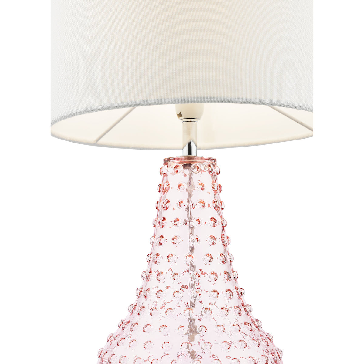 Kristina Glass Table Lamp Pink with White Linen Drum Shade – Vintage Style Lighting Collection for Home Décor