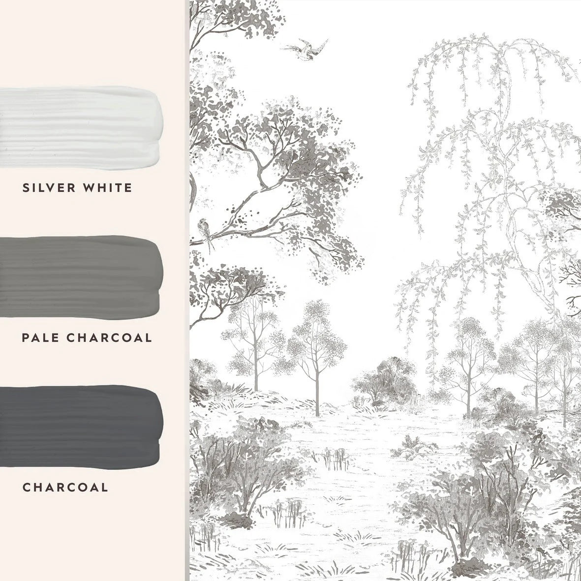Transform your space with the captivating Laura Ashley Talbenny Mono Mural. Immerse yourself in nature with its whimsical forest design, featuring towering trees in a monochromatic colorway. This mural evokes the serene feeling of venturing into the heart of the forest, bringing a touch of the outdoors into your home decor. Explore our Collection and shop wallpapers online at Foy And Company.