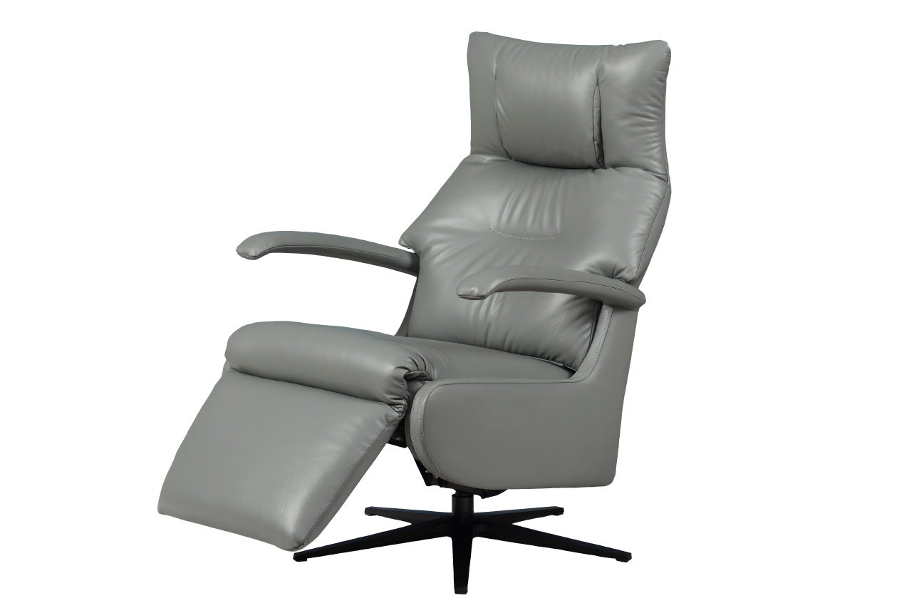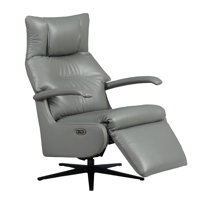 Introducing the Luca Recliner Chair Steel – your perfect companion for unwinding in style and comfort. This electric recliner accent chair boasts a sleek design with a luxurious leather and leather match finish, exuding elegance in your living room. Adjust the Click-Clack headrest to your preference for optimum neck support. The swivel function lets you easily turn and chat with loved ones, while the USB port allows convenient charging of your devices. With an easily cleaned leather surface and a wireless battery pack for cord-free relaxation, this leather recliner chair is a must-have addition to your home. Shop recliner chairs online at Foys and elevate your lounging experience today!