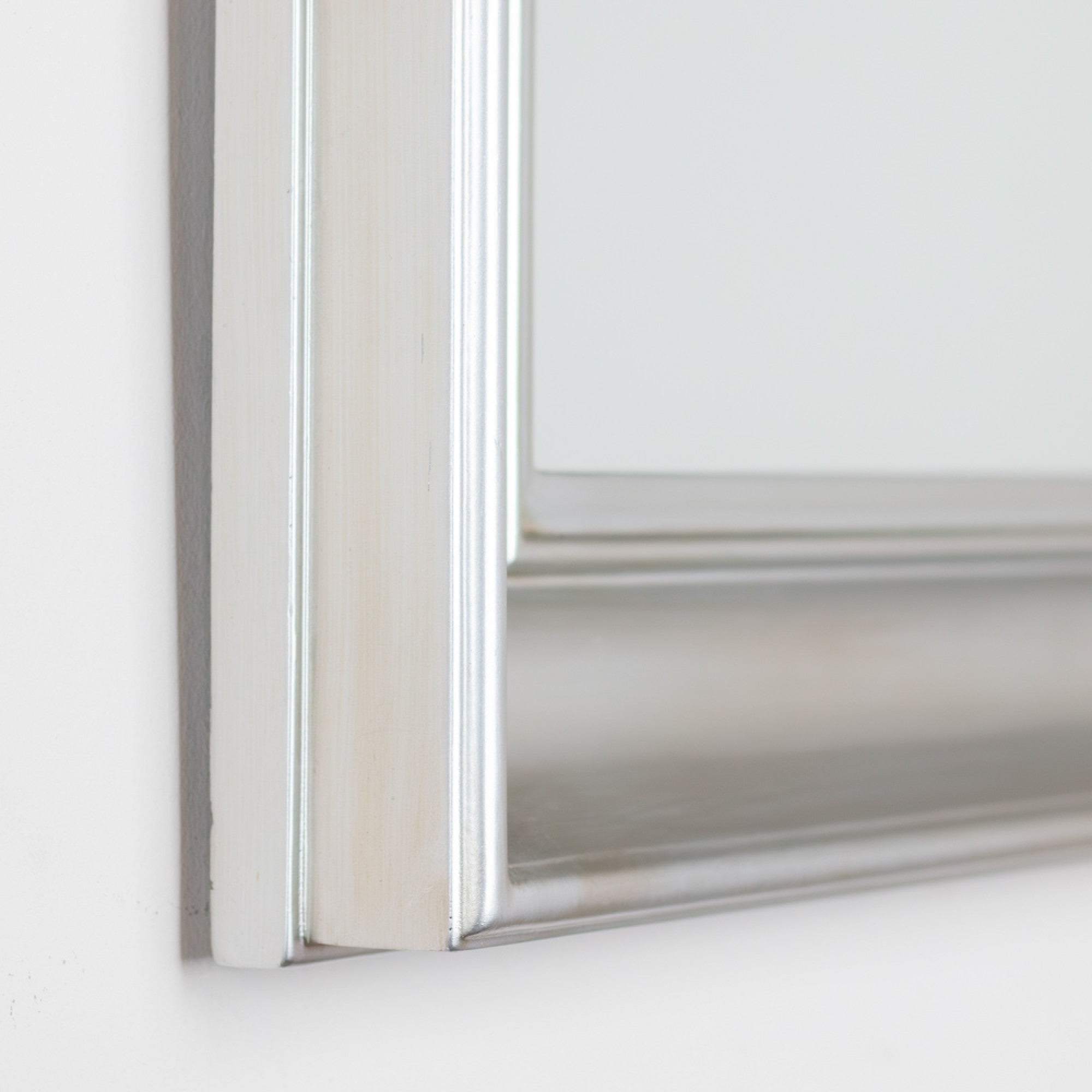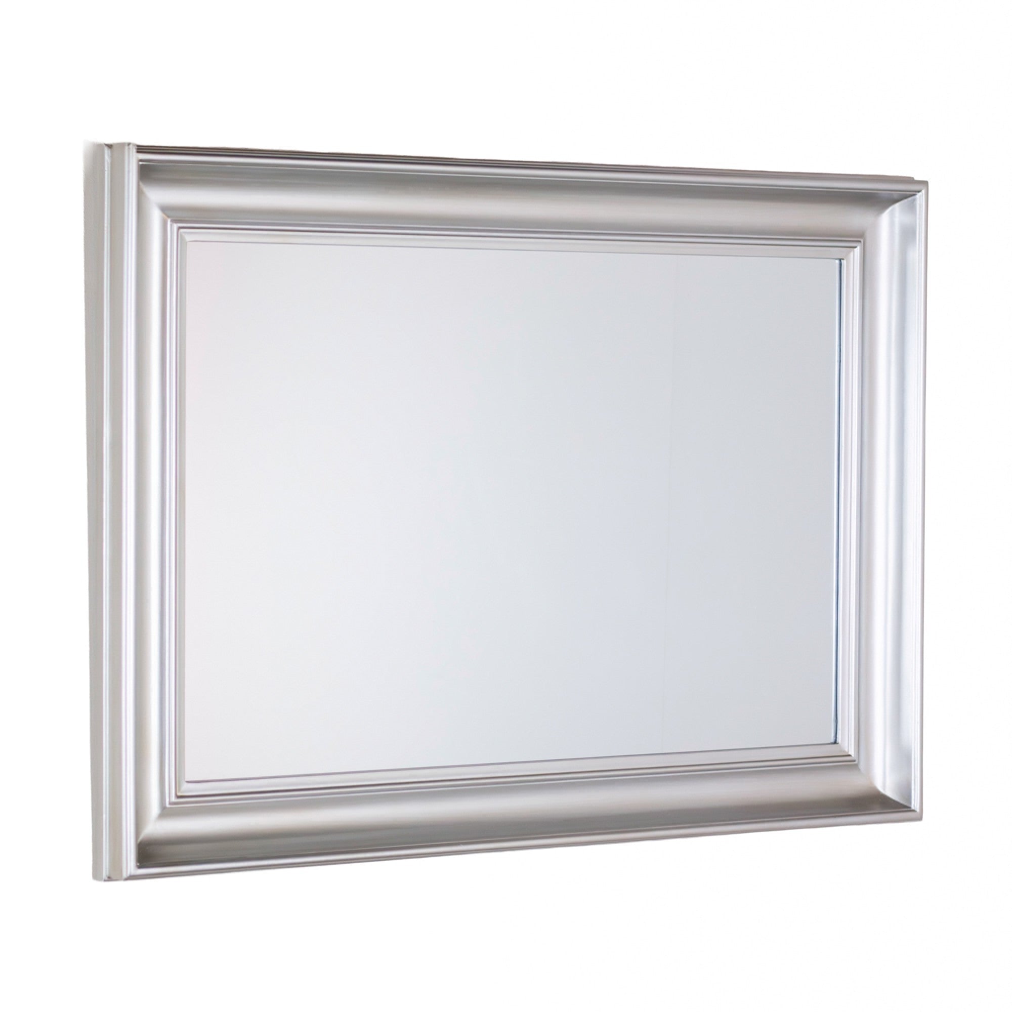 - This champagne mirror looks great with furniture, metal accents, and soft colors.