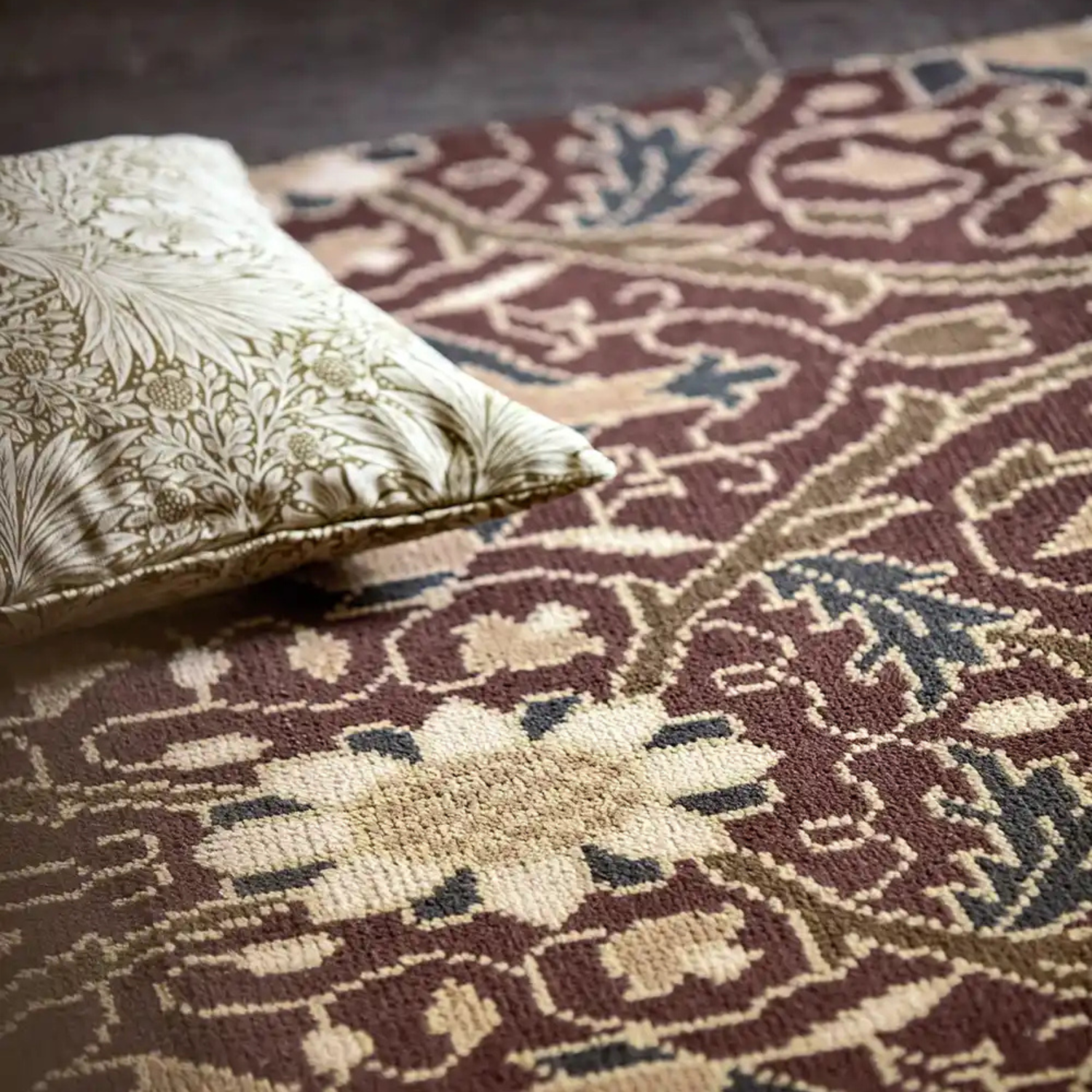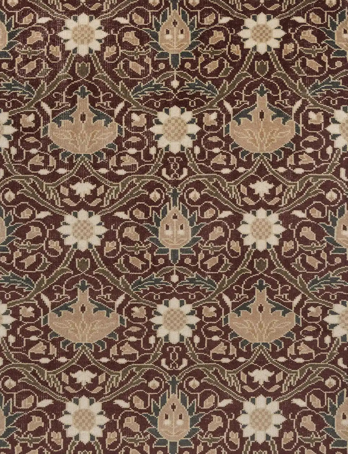 - Rich russet and burgundy floral design by Morris & Co