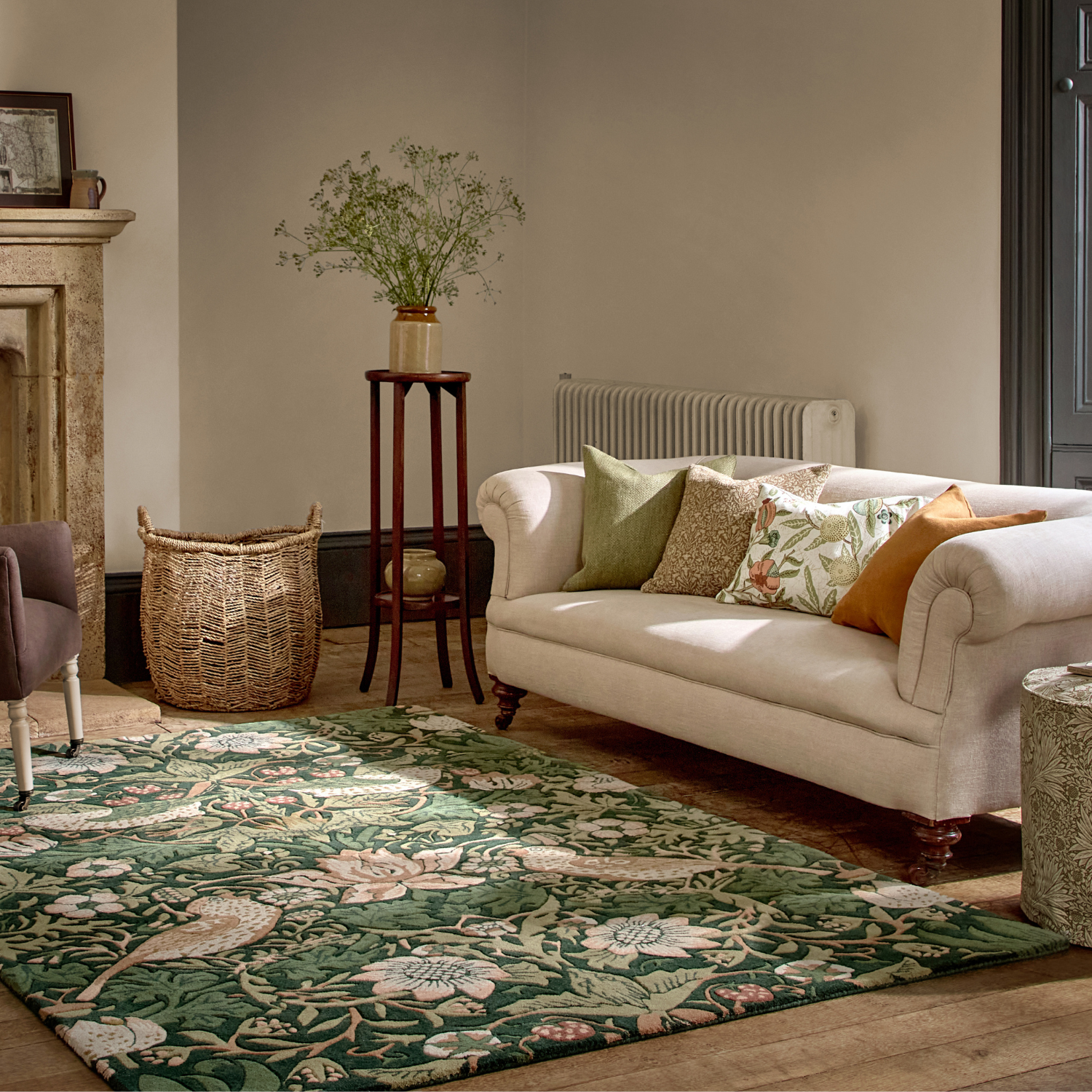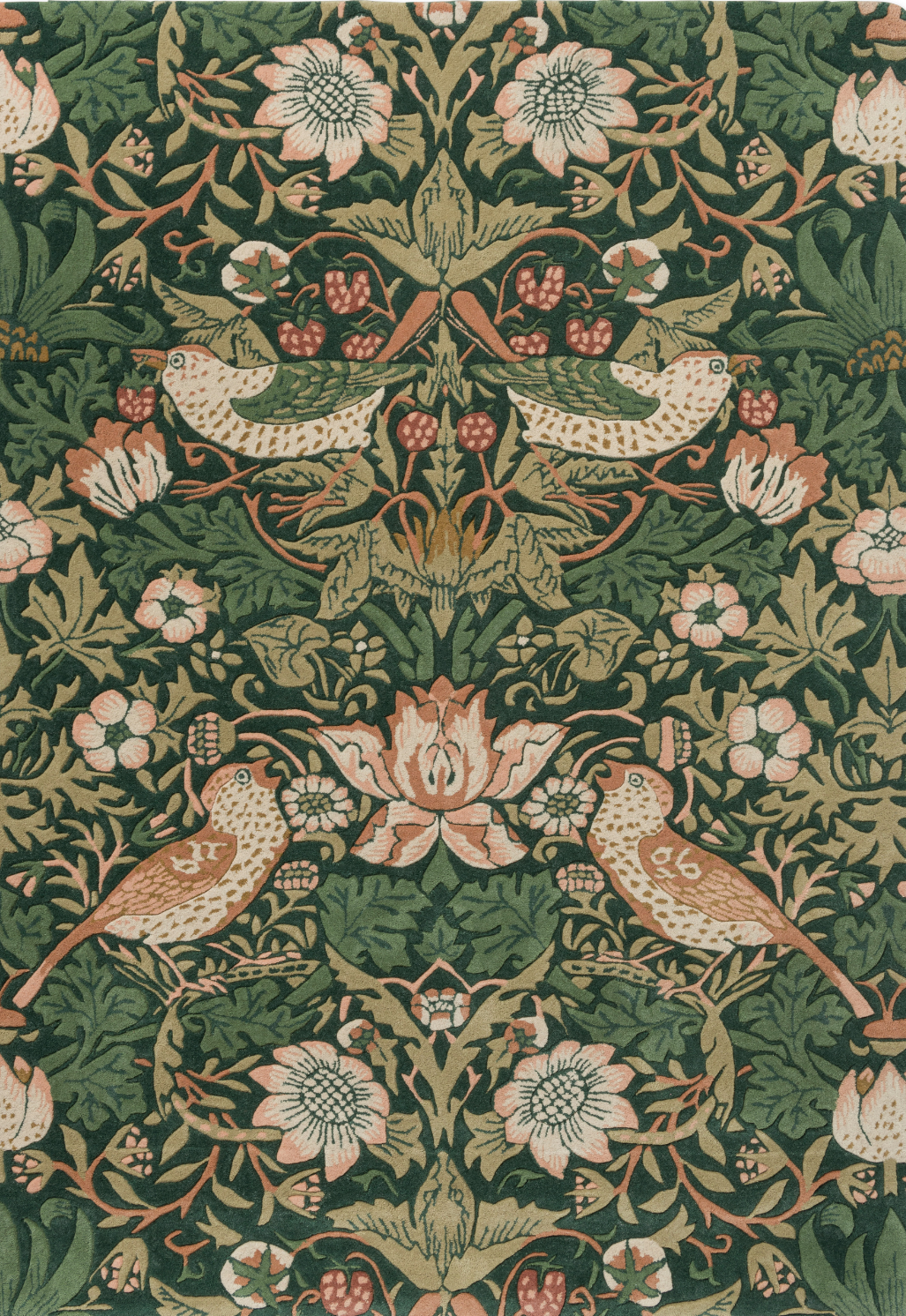 The Morris & Co Strawberry Thief Handtufted Floral Rug is a Beautiful Piece of Art From the Past.