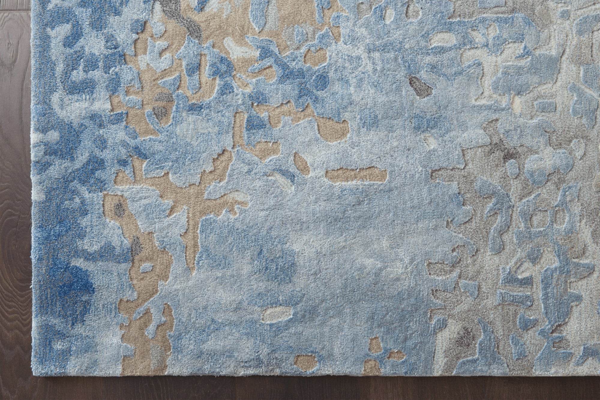 Nourison Prismatic Denim Rug: The Best of Both Worlds—Abstract Style and Wool Luxury