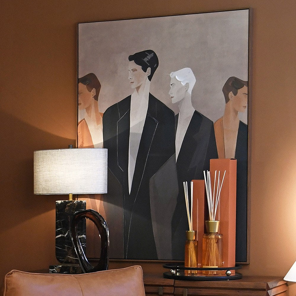 The Orlando canvas wall art brings a refined, fashion-inspired aesthetic to any living space. Featuring elongated stylised figures in warm terracotta, soft neutrals, and charcoal tones, this piece instantly enhances your décor with elegance and depth.