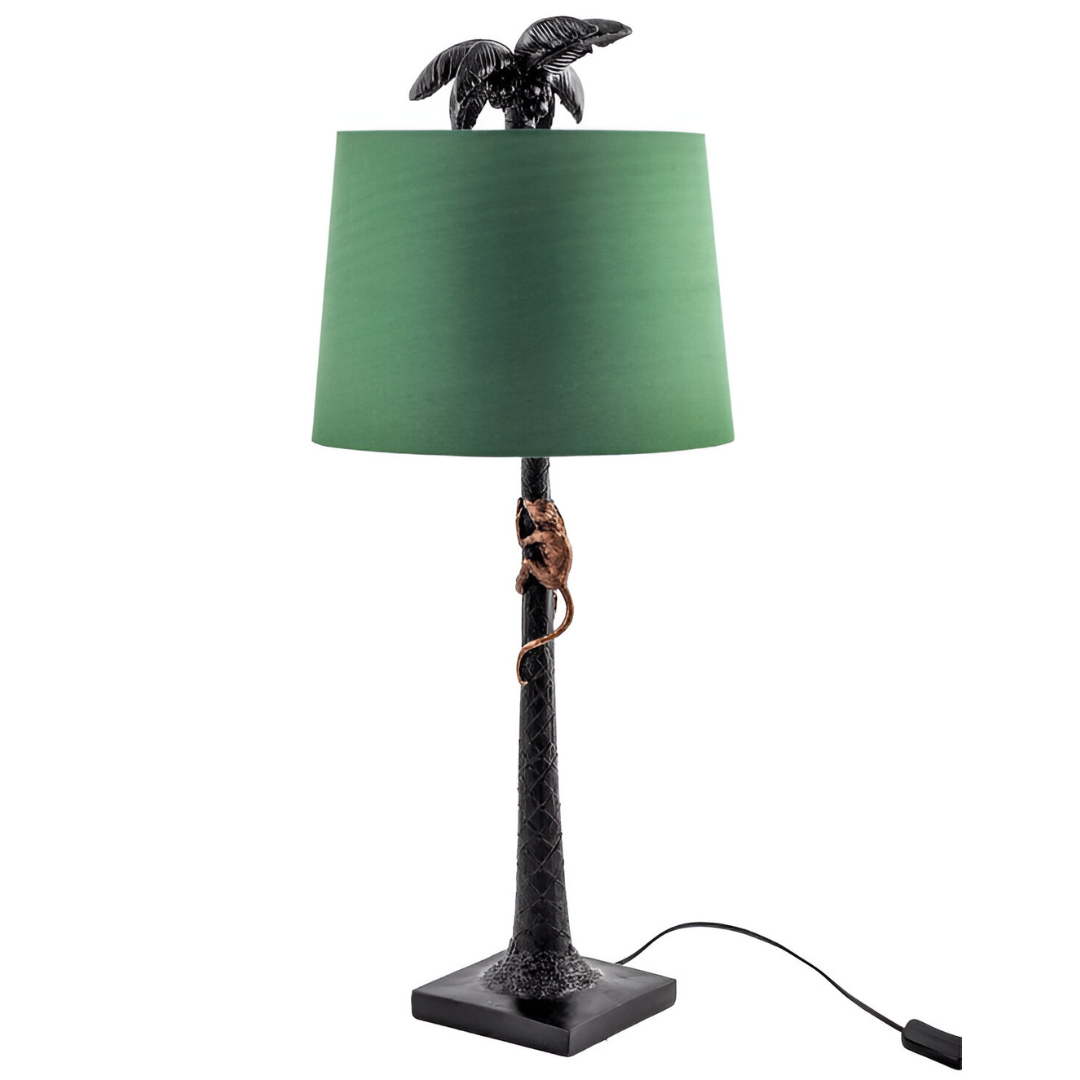 Elevate your home decor with our Black Palm Tree Table Lamp, featuring a charming palm tree with climbing monkey design and a vibrant green lampshade. This unique table lamp adds a touch of tropical flair to any room, creating a warm and inviting atmosphere. Crafted with attention to detail, it serves as both a functional lighting fixture and a decorative accent. Discover our Lighting Collection and shop table lamps online at Foy And Company to add a touch of sophistication to your home.