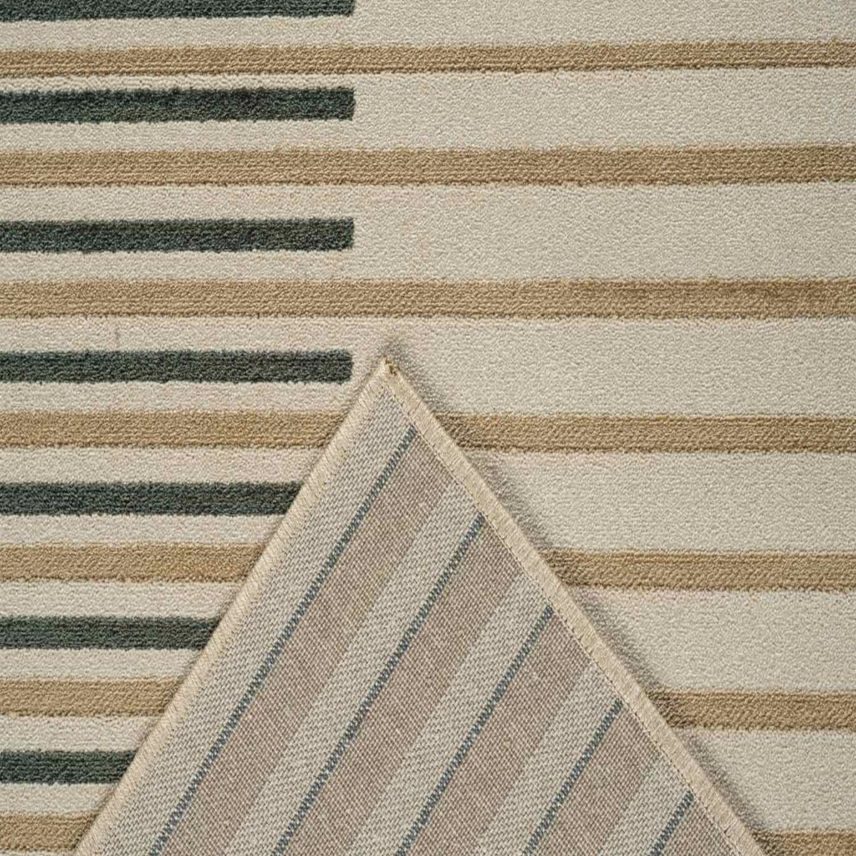 The Paprika Rug 978-0058-6212 in calming cream and green colors brings a refined aesthetic to your modern interiors. Made from recycled polyester with stripe geometric pattern this rug offers durability for years to go. Easy to maintenance this carpet is a great addition for busy traffic areas. Whether you placed it in your bedroom or dining room it brings warmth and sophistication to any space. It delivers a subtle statement that ties furniture and décor together effortlessly while creating a centerpiece for conversations.