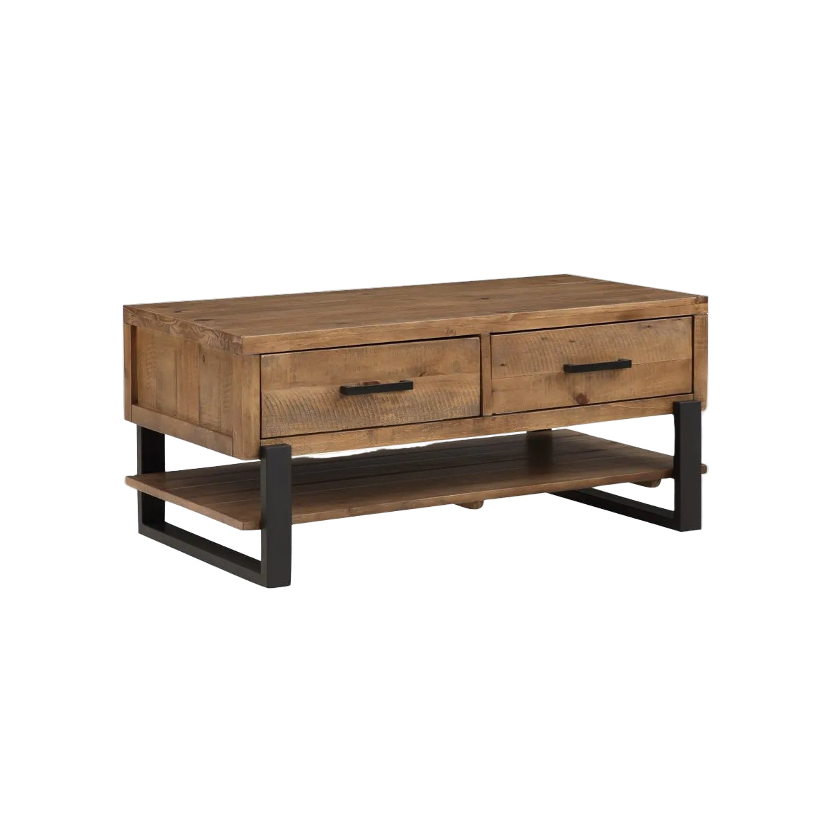 This beautiful Pembroke Coffee Table with Drawer will bring a rustic elegance and warmth to your living areas. Crafted from pine wood in a pine veneer finish it infuse charm and coziness while contrasting black metal legs create a timeless look that complements a variety of decors. Features 2 spacious drawers with black metal handles and low shelf it offers an extra storage space and allows you to keep your living room clean and tidy. This wooden coffee table like this transforms your space, balancing rustic charm with sleek design. For an easy way to elevate your living room style, shop coffee tables online at Foys.