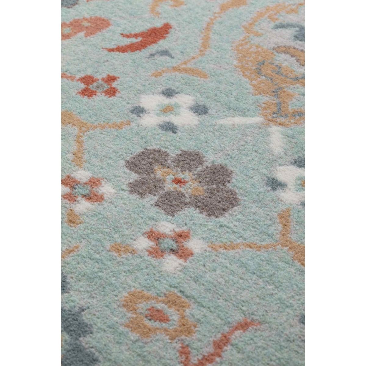 Crafted with a serene blue palette, the intricate damask patterns and bordered design infuse charm and serenity into any room. Whether placed in a dining area or bedroom, its 9mm pile height ensures a plush and inviting feel.