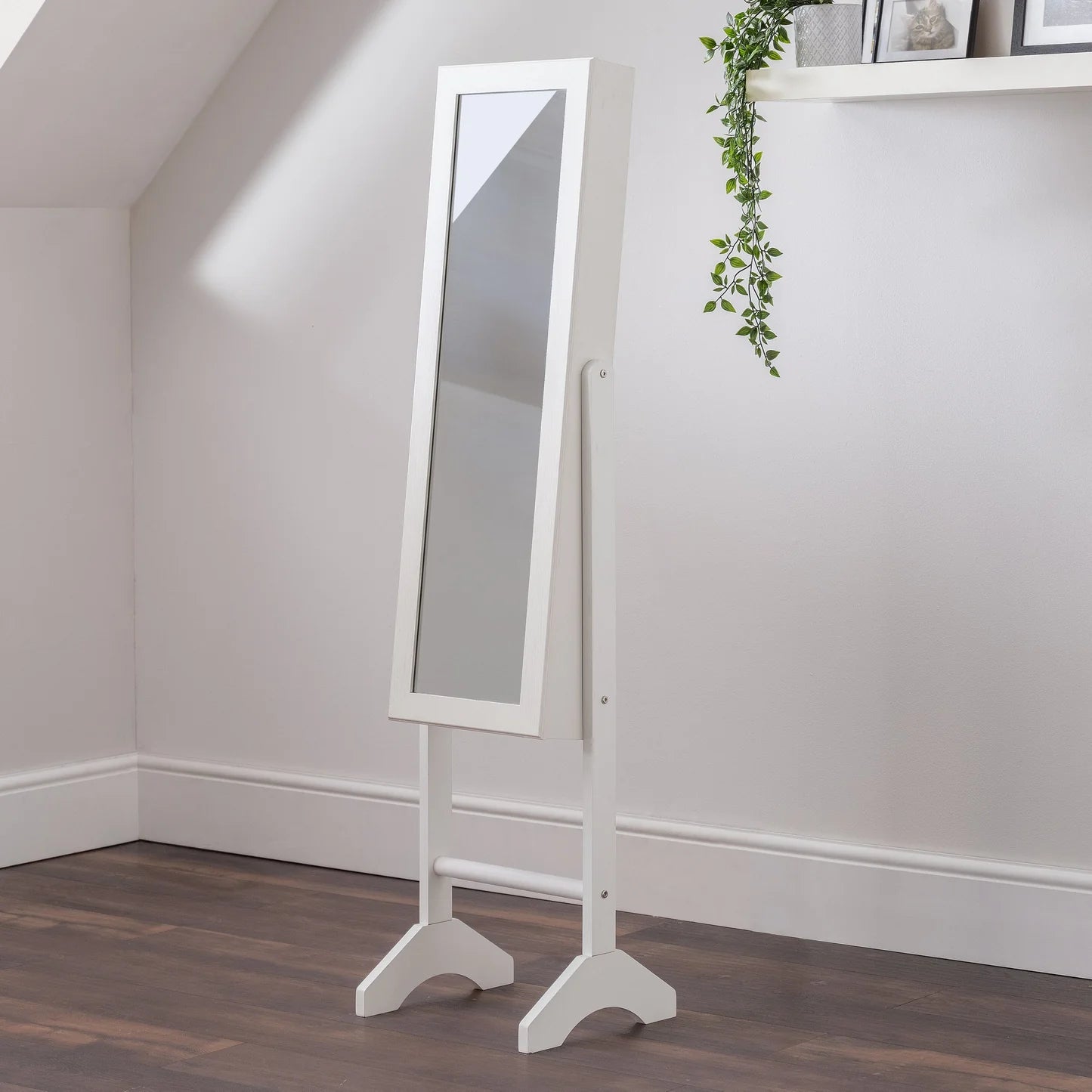 Elevate your everyday make-up routine with this beautiful Prima Jewellery Mirror designed to make you feel like a star. Floor standing full-length mirror in solid white wooden frame with a jewellery cabinet will perfect fit to your contemporary or traditional interiors and is great solution for your bedroom or dressing room. You can storage your make-up accessories and jewelleries inside all beautiful organised in the one space. Shop mirrors online at Foys and transform your getting ready experiences to the new level.