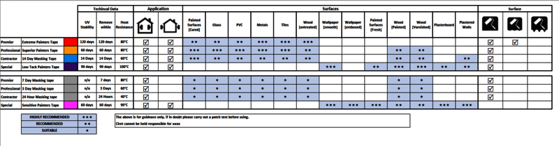 This Professional Masking Tape is an interior only tape that will leave smooth flat edges with all kinds of paint work. Its high initial tack makes the tape ideal for rougher surfaces yet performs very well on most surfaces and finishes. General purpose of this masking tape is easy-tear for a range of DIY applications. Easy to remove, with no adhesive residue.
