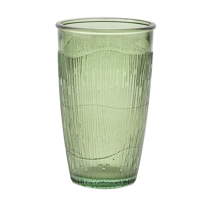 This sleek, recycled glass tumbler is perfect for any beverage. The beautiful green tint and ribbed design make it a stylish and unique addition to your home or office. This tumbler is eco-friendly and durable. It's the perfect way to enjoy your favourite drinks while helping the environment.