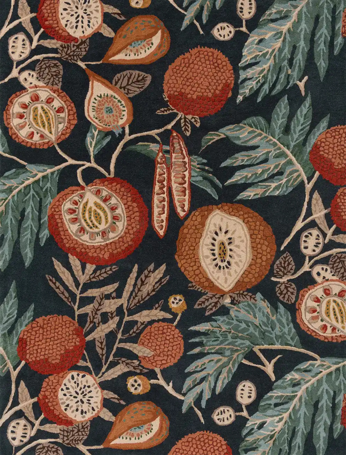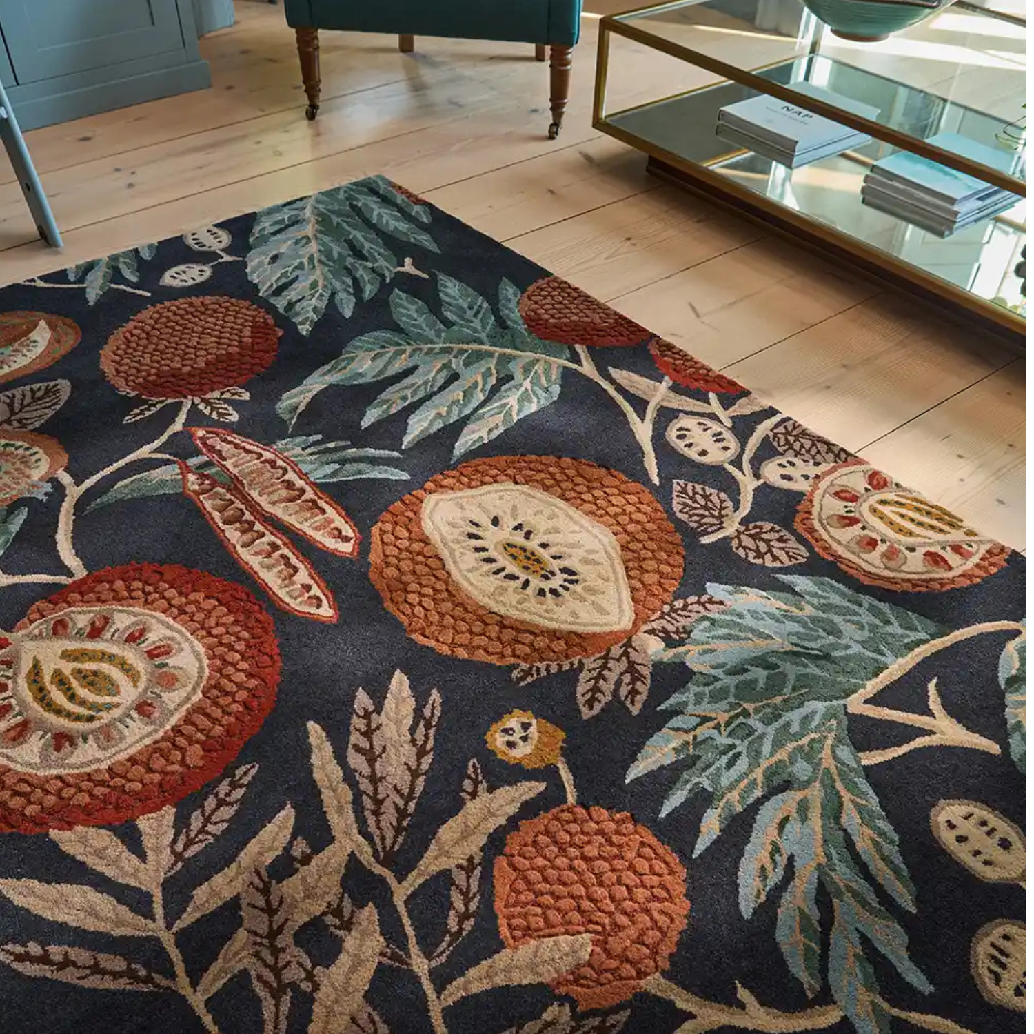 - Iconic Sanderson floral rug design inspired by tropical jackfruit