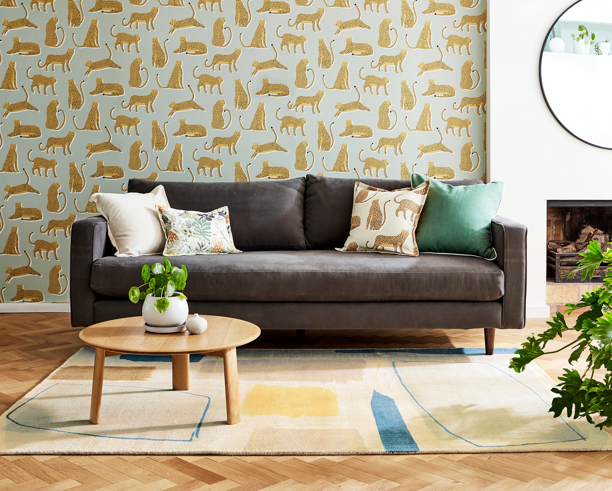 Crafted from handloomed pure new wool, this rug is designed for durability and softness. Wool is a natural choice for busy homes, offering flame retardancy and high stain resistance. Its screenprinted pattern ensures the vibrant colors remain vivid for years to come, making it not just a rug but a lasting investment in style and comfort.