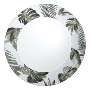 The on-trend Syagrus Mirror features a round design with palm leaf print detailing around the border. This modern mirror will add a beautifully tropical edge to your decor; ideal for bedrooms, living and dining rooms.