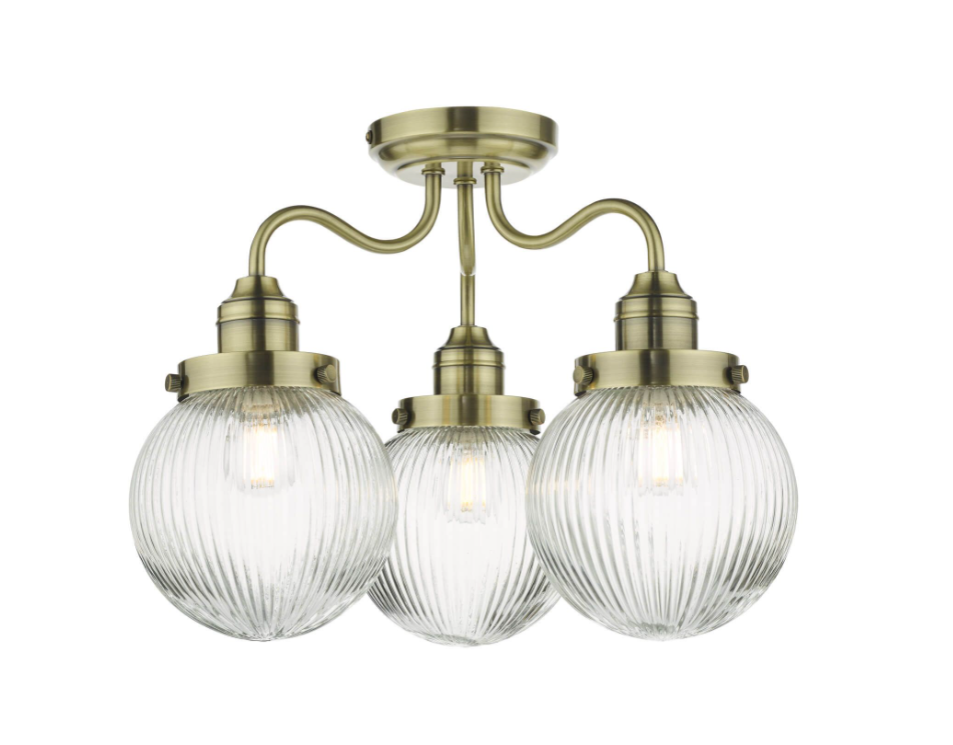 Introducing our Tamara Brass Semi Flush Light, the epitome of semi flush lighting perfection. This vintage-inspired design features an antique brass finish and three ribbed glass shades that softly diffuse the glow for a warm ambiance. The semi-flush mount design offers versatile placement options to suit your space. If you're searching for the perfect ceiling light to enhance your decor, this semi flush fitting will deliver vintage elegance with modern appeal. Discover our Lighting Collection and shop semi flush lights online at Foy And Company to transform your ceiling lighting with this exquisite fixture.