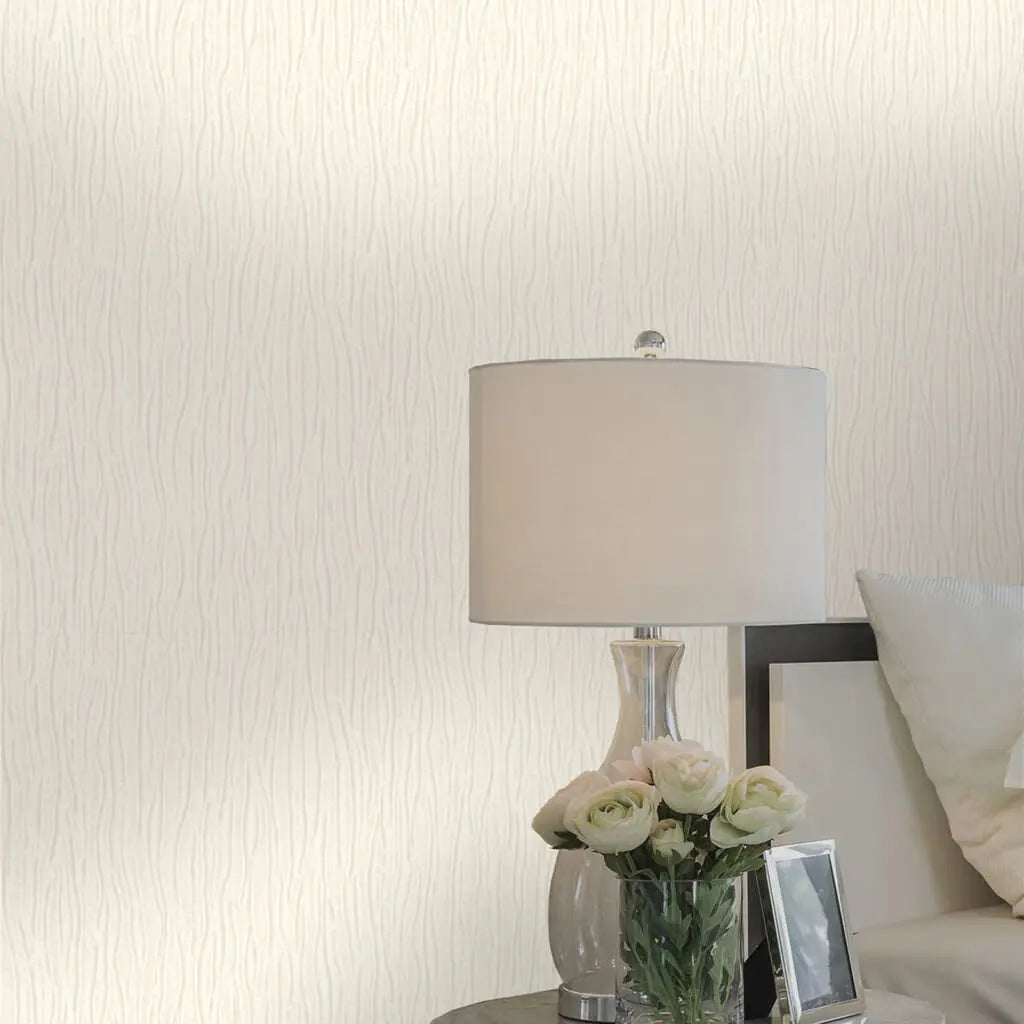 New Tiffany Platinum Wallpaper designed to elevate your living space with elegance and sophistication. They create the effect of sculptured fabric within a solid Italian vinyl wallcovering. The heavyweight linear pleat texture in comforting cream features both highlights and shadow detail that emulates a rich, luxurious, fabric. The inclusion of mica within the inks gives New Tiffany Platinum Texture a subtle yet light-reflective shimmer that illuminates and bounces any light back into your living space. This top-quality wallcovering is a dream to hang and will give you that seamless look across your wall for years and years to come. Buy wallpapers online at Foys and add dimension and soft glow to your home décor.